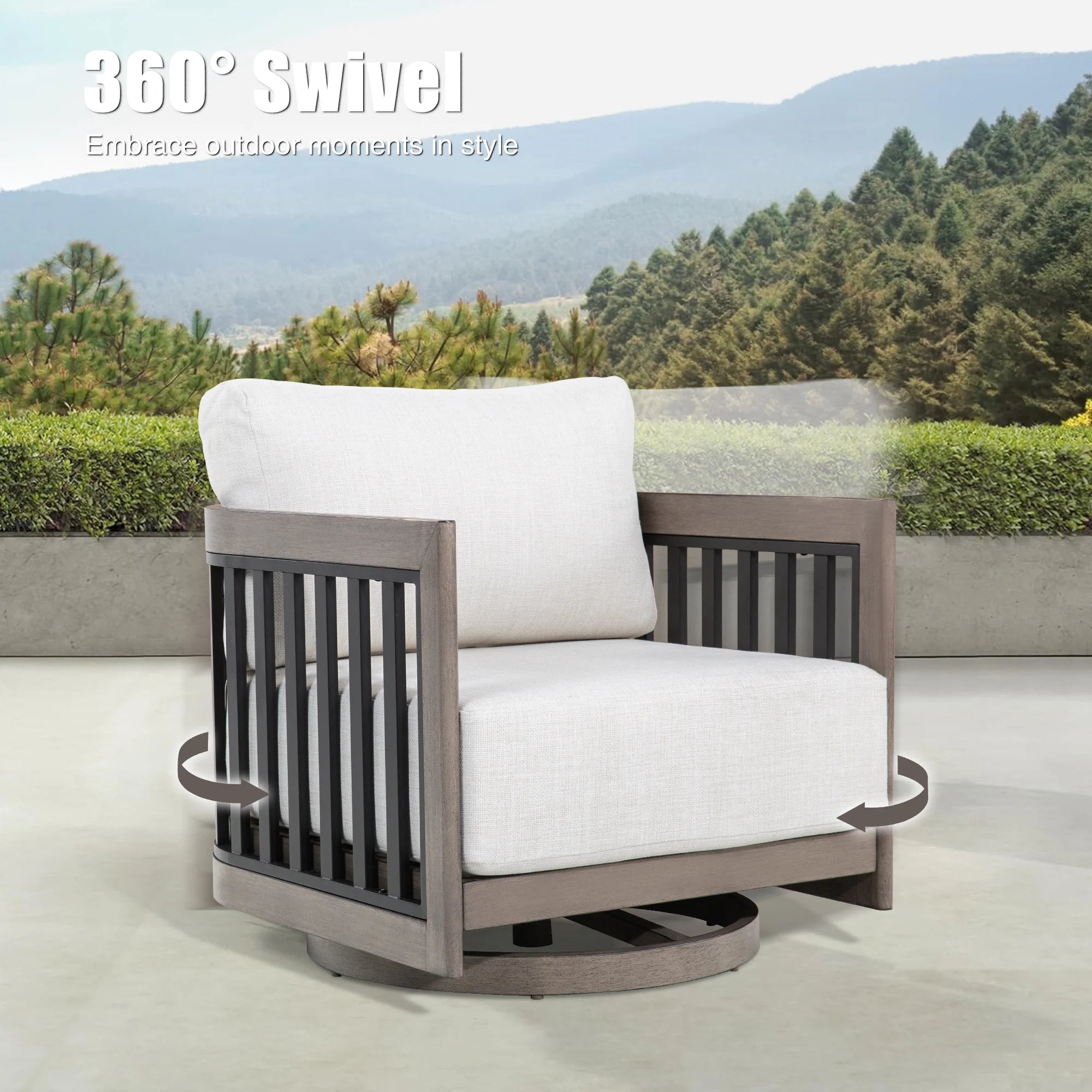 Sereno Outdoor Aluminum Sofa Set With Swivel Chairs and Round Coffee Table
