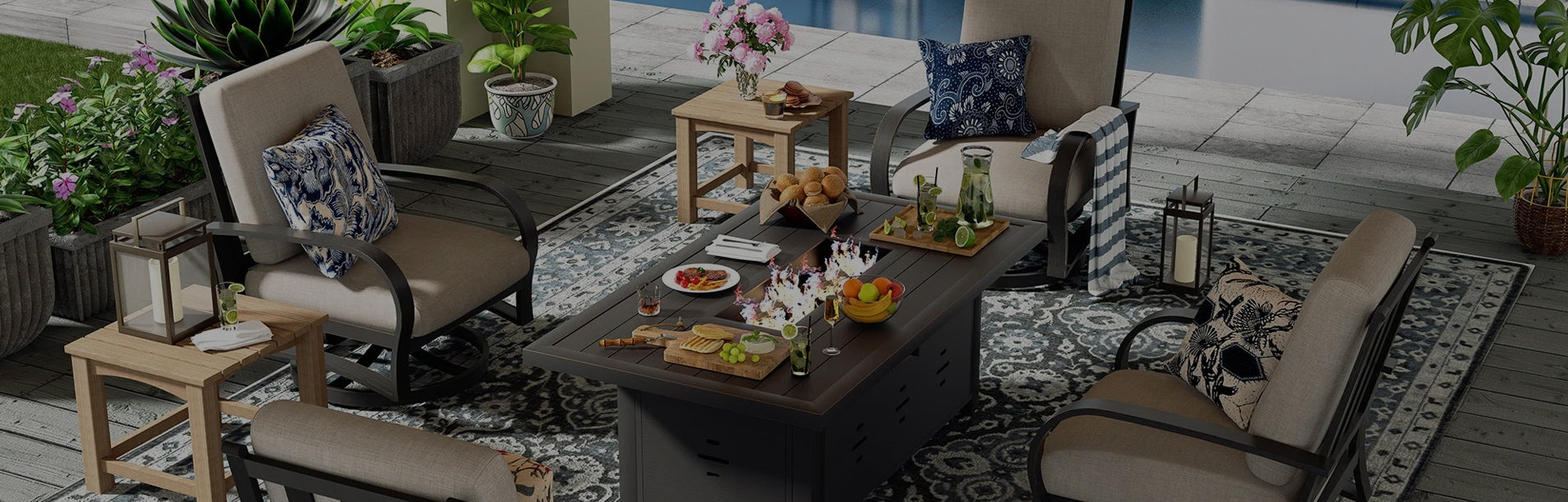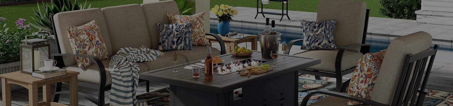 Do you have matching furniture like chairs or sofas with the fire pit tables?