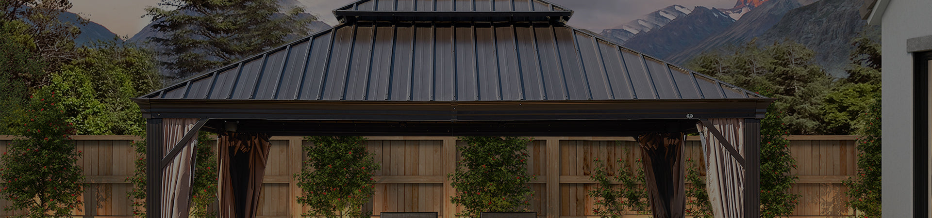 Of course. A sturdy and durable aluminum frame with powder-coated and galvanized steel hard roof ensures safety for all seasons, without worrying extreme weather including heavy snow or heavy rain. Sheer curtain design avoids mosquitoes in summer.