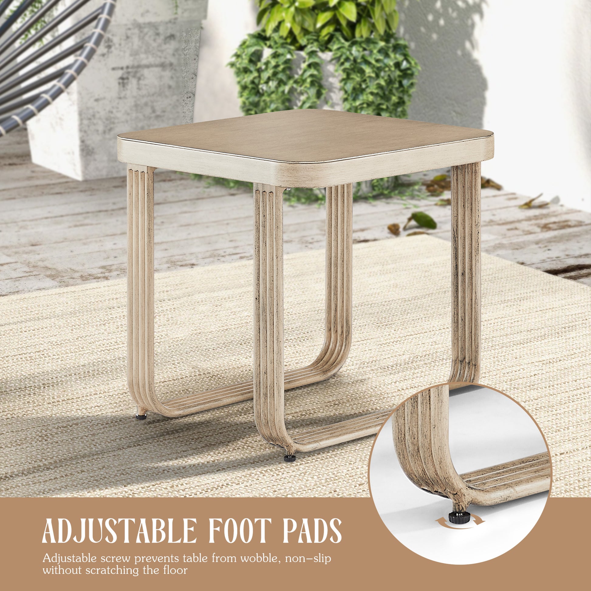- Aluminum Side Table: Stable table provides a chic yet hard surface for placing snacks, drinks, decor etc. Easy to clean and maintain.
