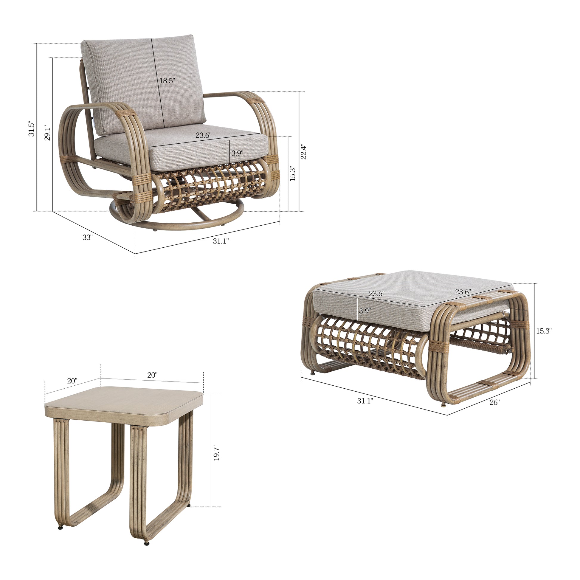 - Multi-purpose Ottoman: Serves as a footrest or extra seating for flexible and comfortable outdoor gatherings.