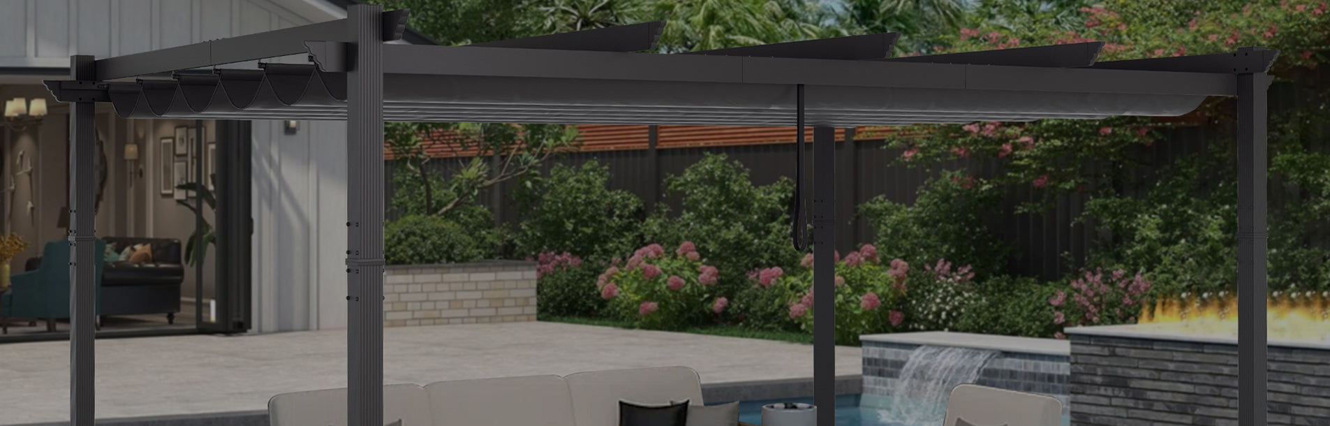 Peakhome offers full ranges of pergolas to meet your needs, including retractable roof pergolas, adjustable roof pergolas, and attached or freestanding pergola kits. Enjoy year-round comfort with a Pergola with Roof in your patio, garden, poolside, or restaurant terrace, without worrying about harsh sun, or sudden rain.