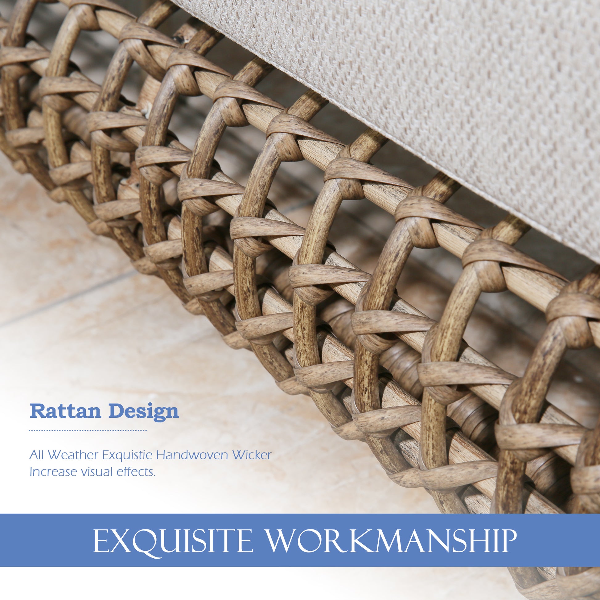 This well-designed luxury conversation collection is perfect for gatherings with family and friends. Rust-free aluminum paired with all-weather rattan ensures high quality while presenting a unique and stylish shape, making it a bright landscape of your yard, and enduring long-term use, accompany you to spend a happy leisure time.