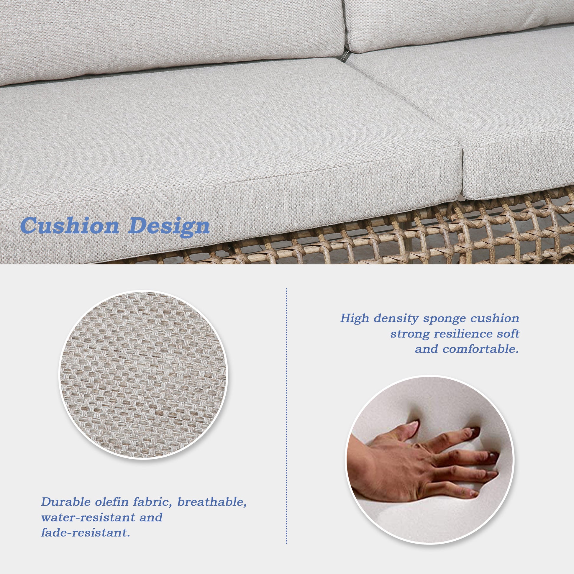 - Upgraded Cushions: Made of 100% olefin fabric that is water resistant, fade resistant and breathable. The cushion cover comes with a zipper for easy cleaning, which facilitates your maintenance.