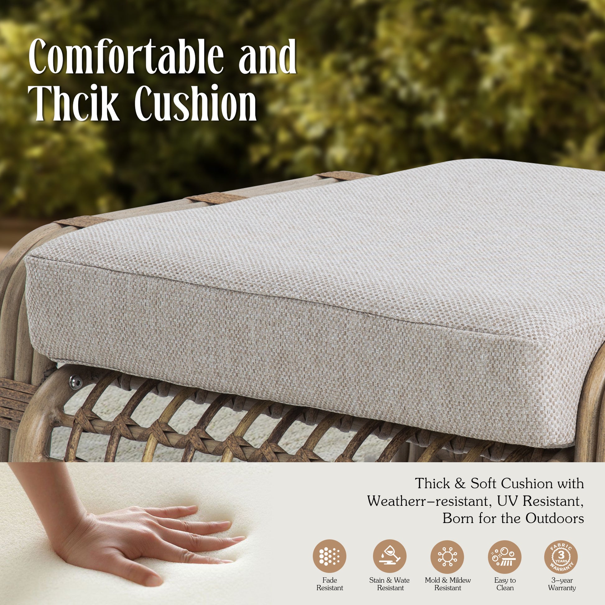 - Premium Materials: Made of rust-free Aluminum frame and durable PE wicker, weather resistant for year round use.