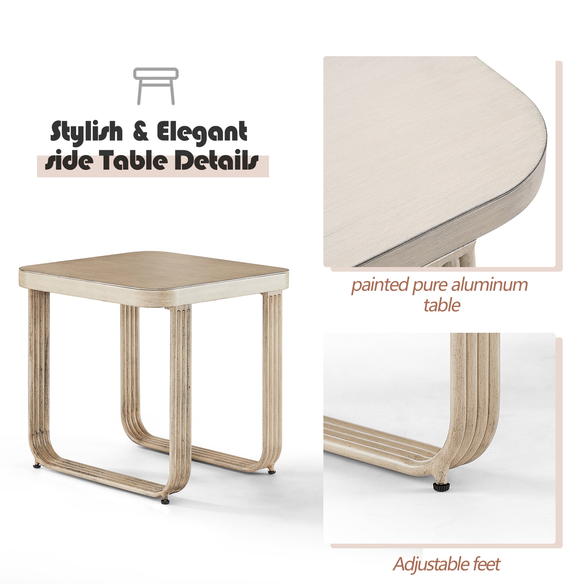- This end table is made of an all-weather aluminum frame with a hand-brush finish, convenient for daily cleaning and maintenance.