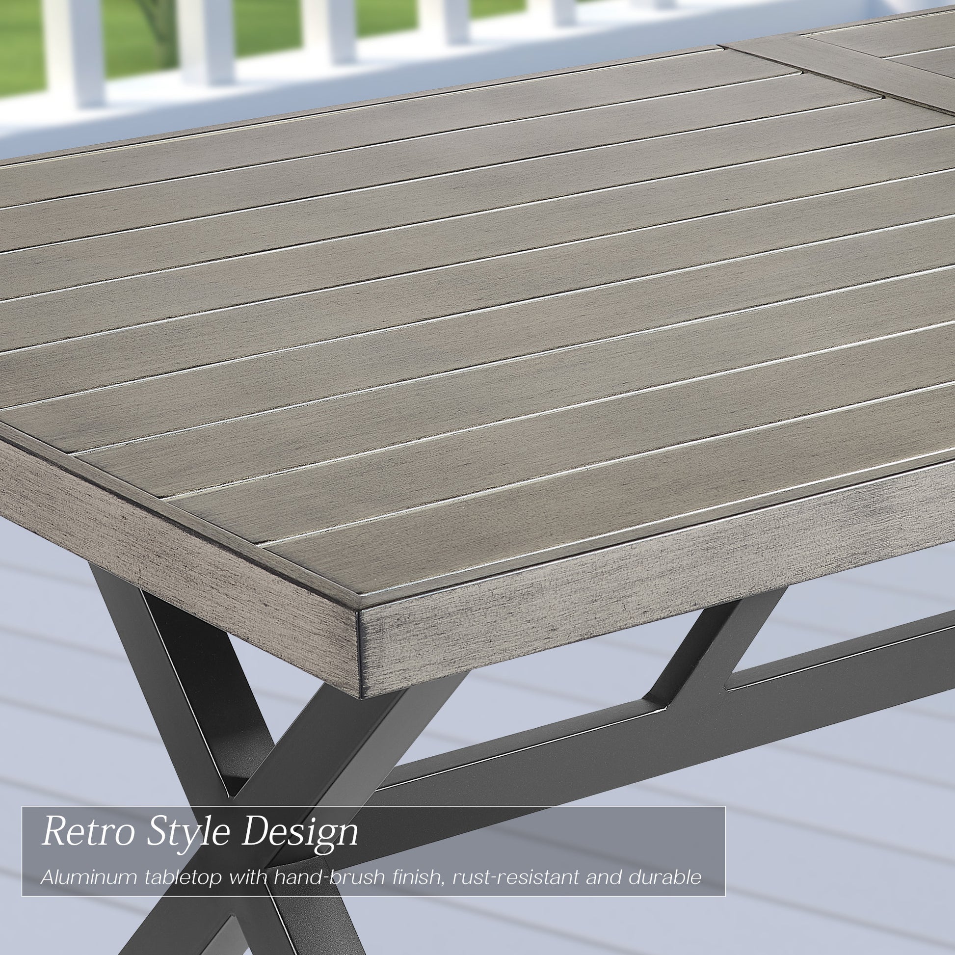 - 82.5” Long table: The table is made of powder-coated steel frame and aluminum tabletop, weather resistant for long-term use. Equipped with a 1.69” umbrella hole to facilitate your outdoor activities