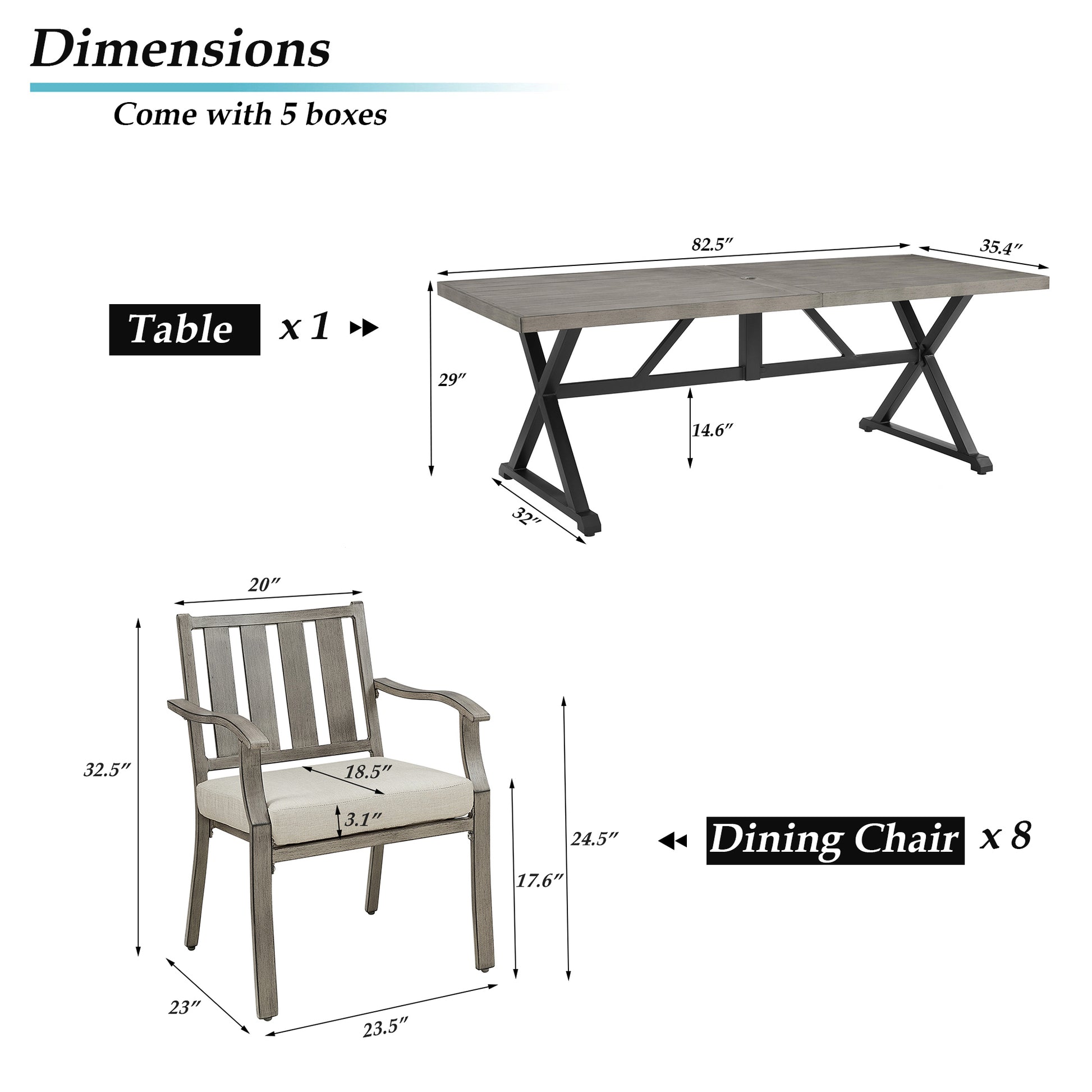 Amario 9 Pieces Outdoor Dining Set with Rectangle table & Aluminum Chair