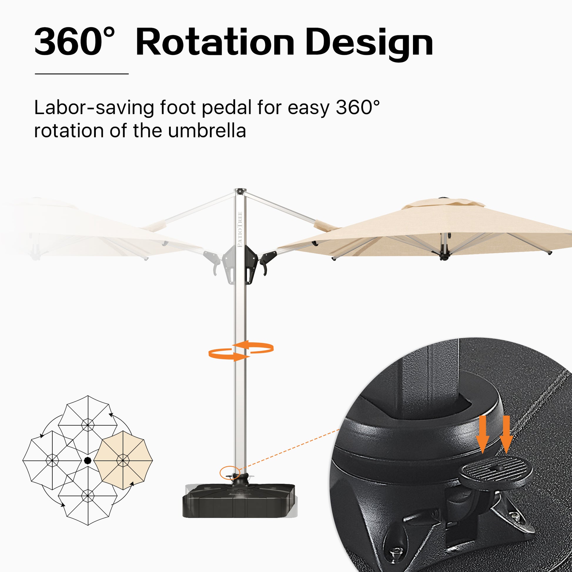 PATIO TREE Belize 11ft Large Round Patio Cantilever Umbrella For Garden Pool Porch