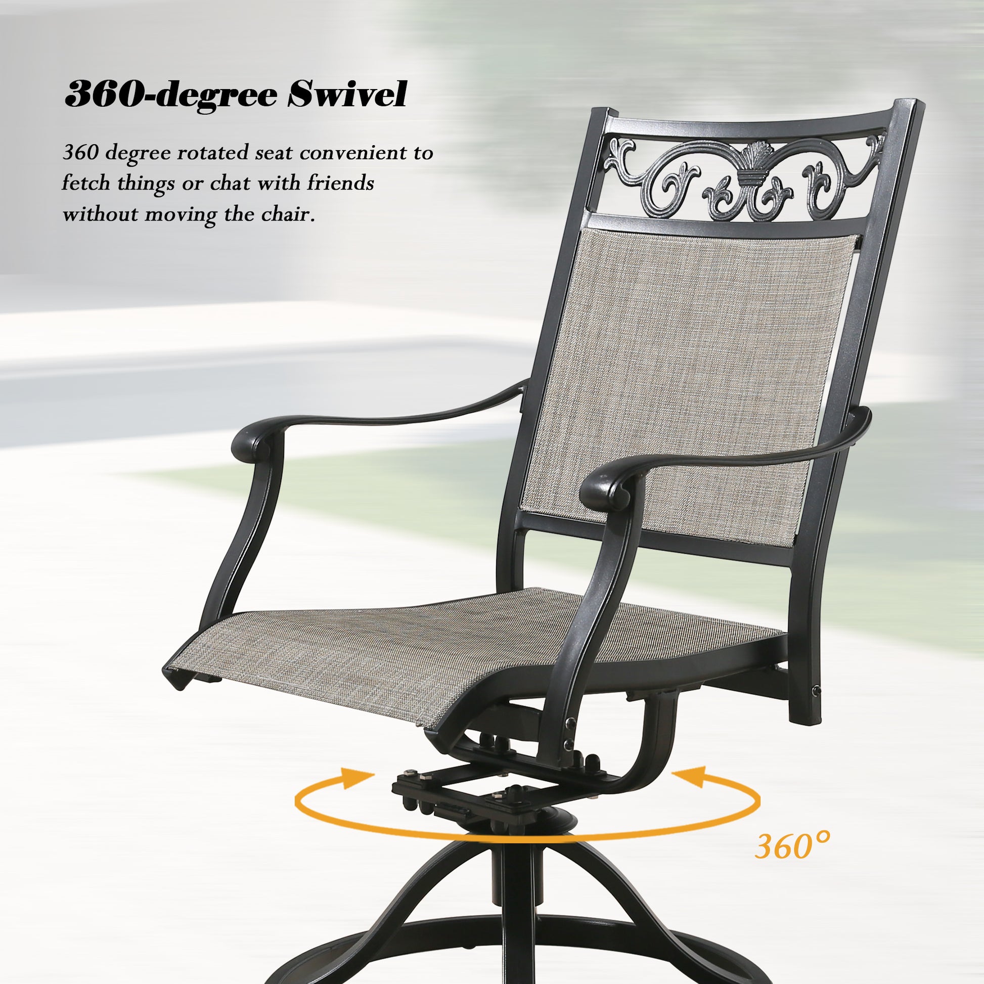 PEAKHOME Cast Aluminum Patio Swivel Dining Chairs Outdoor Slight Rocking Chairs with Textilene Sling Seat and Back