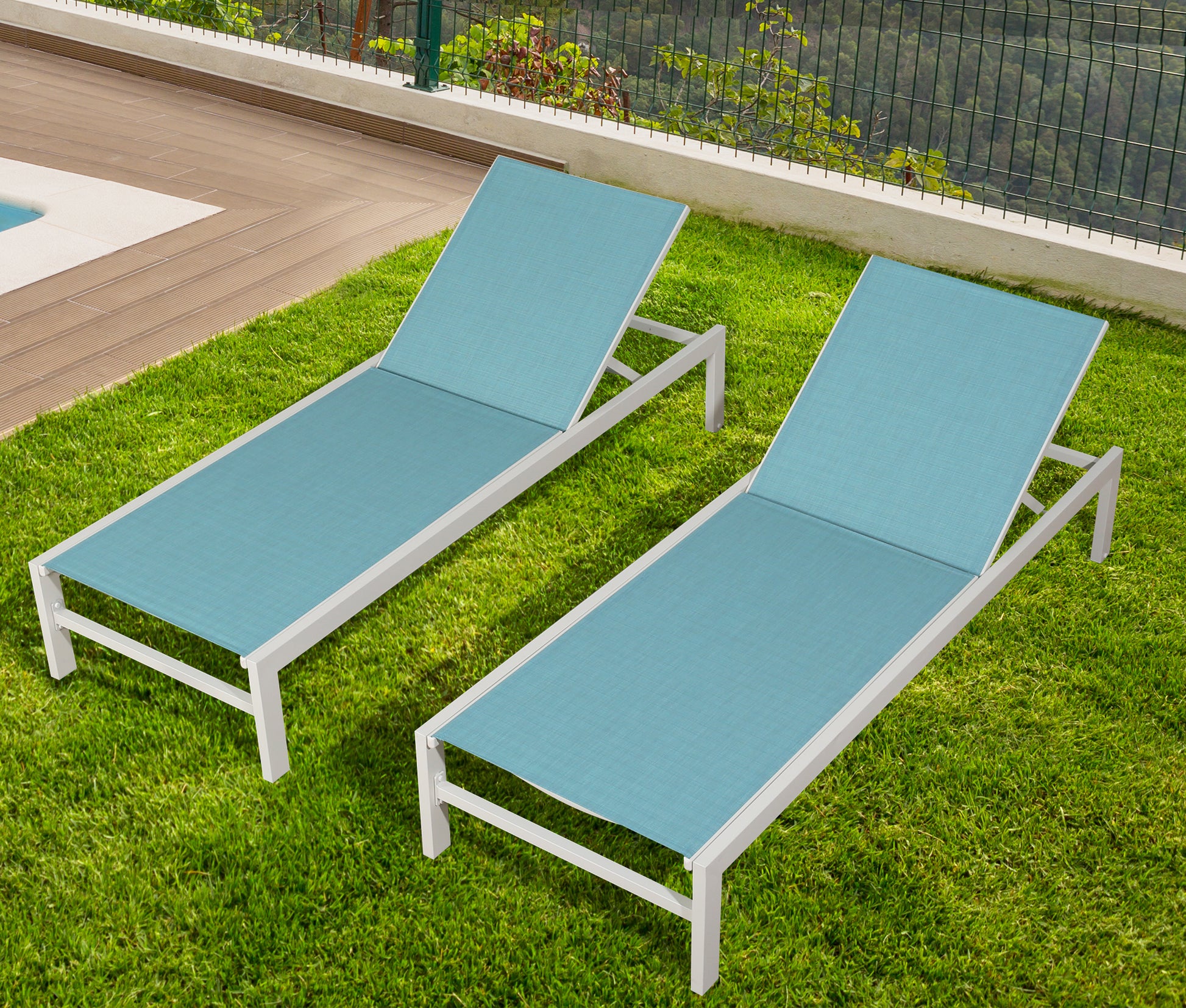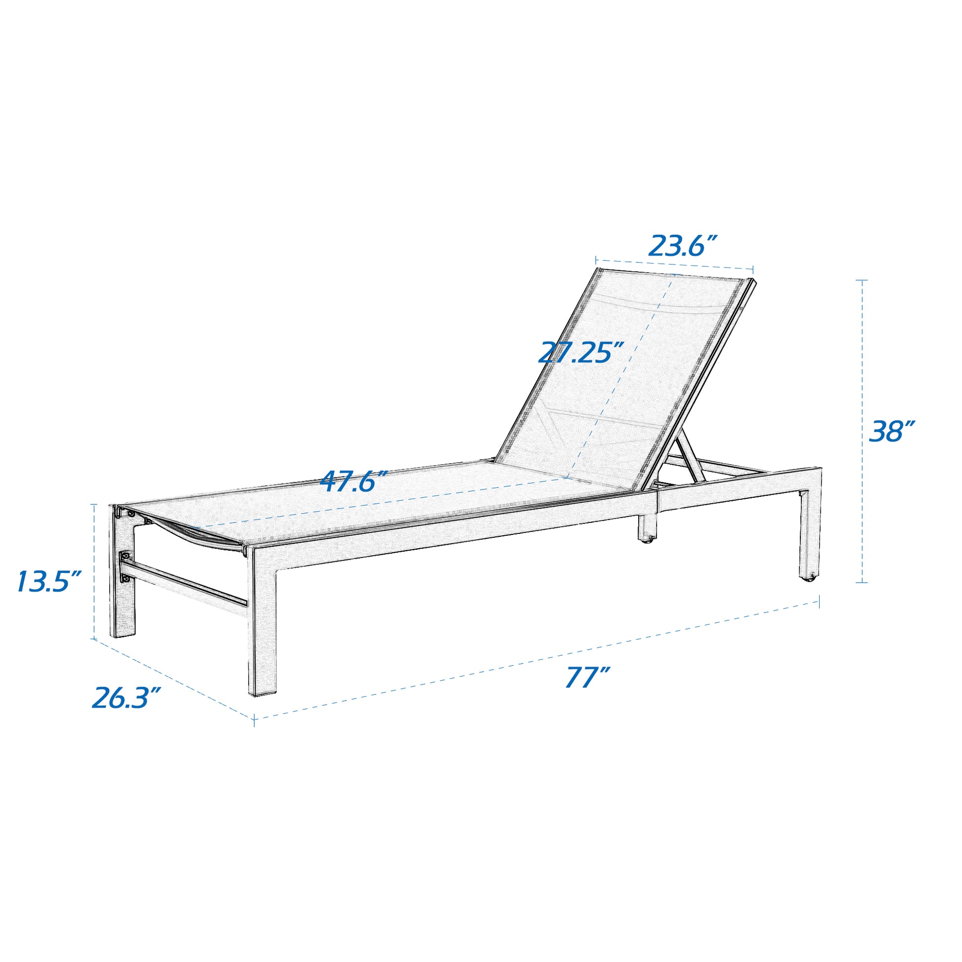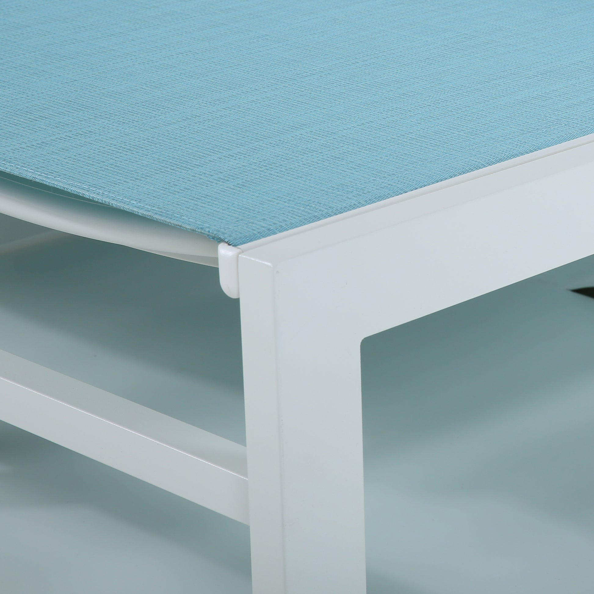This 2-piece chaise lounge chair offers serene seating for your patio or pool deck. Each chair has a powder-coated aluminum frame with a white finish and has Phifertex sling PVC-Coated Polyester fabric seats in a blue hue. Sling chair fabric needs strength and stability to stretch under tension and offer comfortable support, Phifertex sling fabric is up to the challenge. It’s also stain-resistant and so easy to clean. When spills do inevitably happen, a quick wipe-down with soapy water will solve most of your problems. What’s more, they have adjustable backs that let you lay propped up or completely flat, and they include caster wheels for easy movement around your outdoor space. These reclining chaise lounges are weather-resistant for regular outdoor use, and they complement coastal and contemporary decor styles alike.