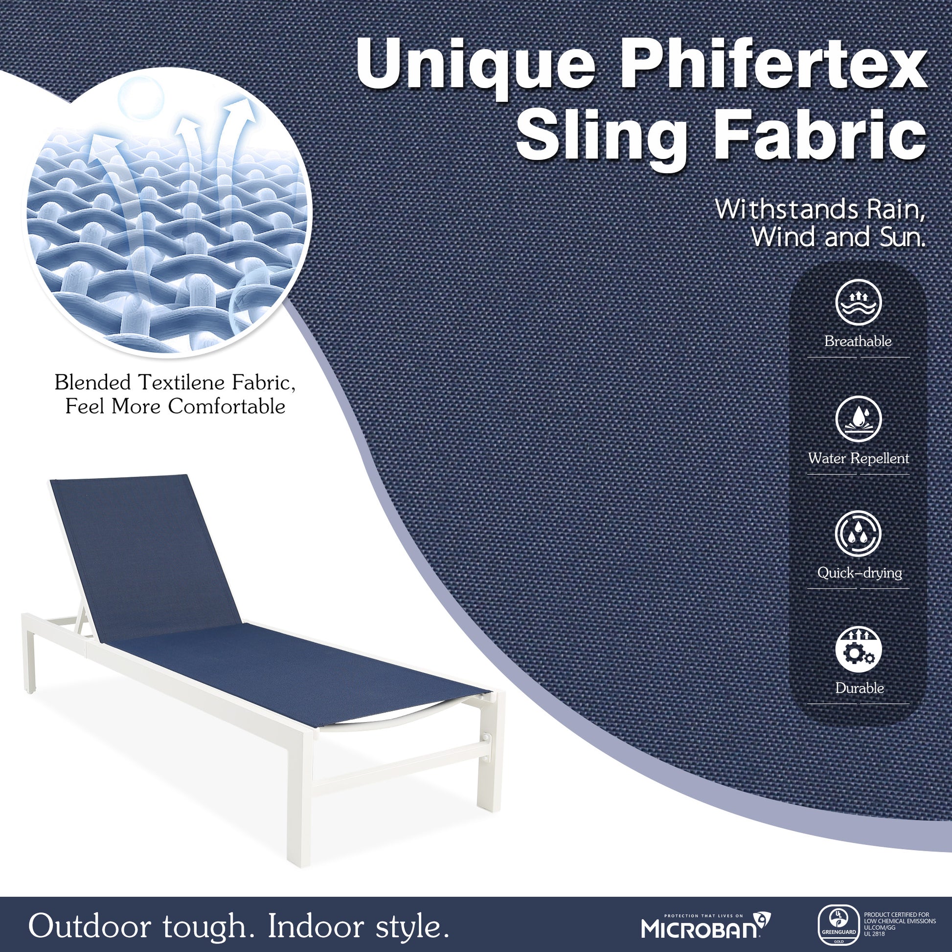 - Phifertex sling fabric is durable, breathable, UV-resistant, and fade-resistant to ensure your chair stays as vibrant and colorful as the day you bought it for years to come.