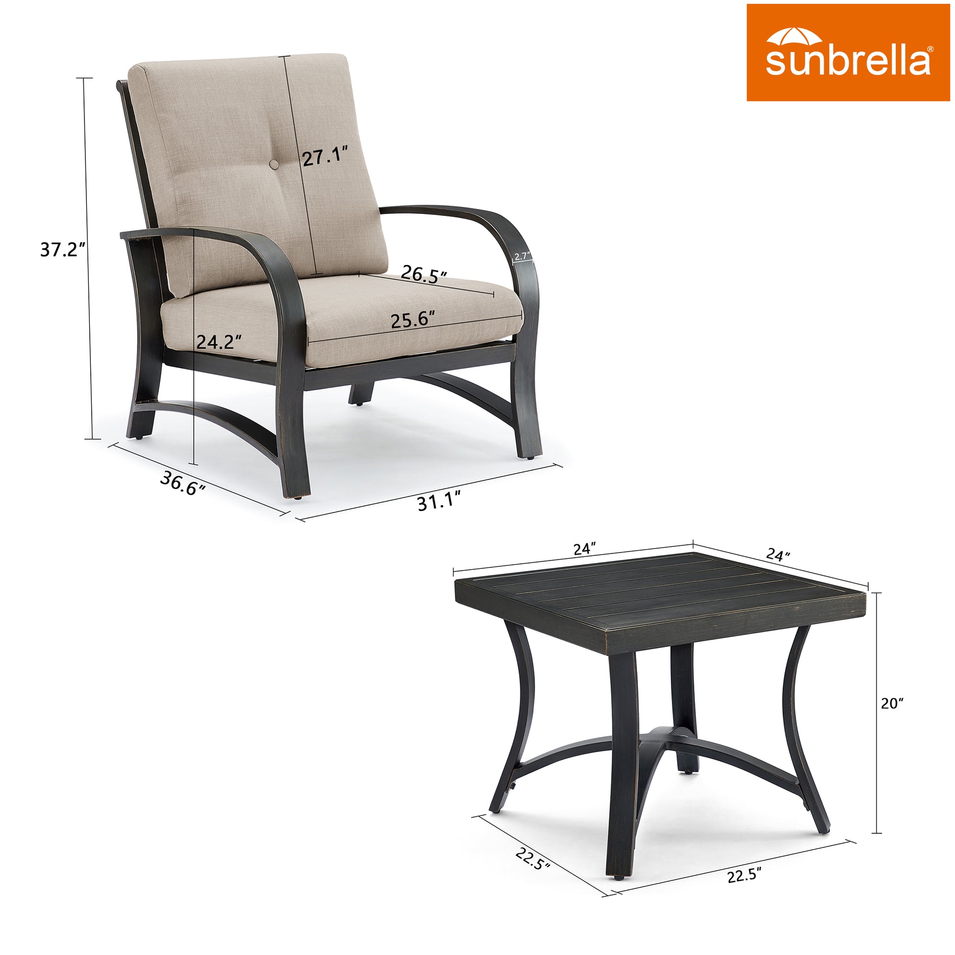 Chamber 3 Pieces Aluminum Patio Bistro Sets with Sunbrella® Cushions