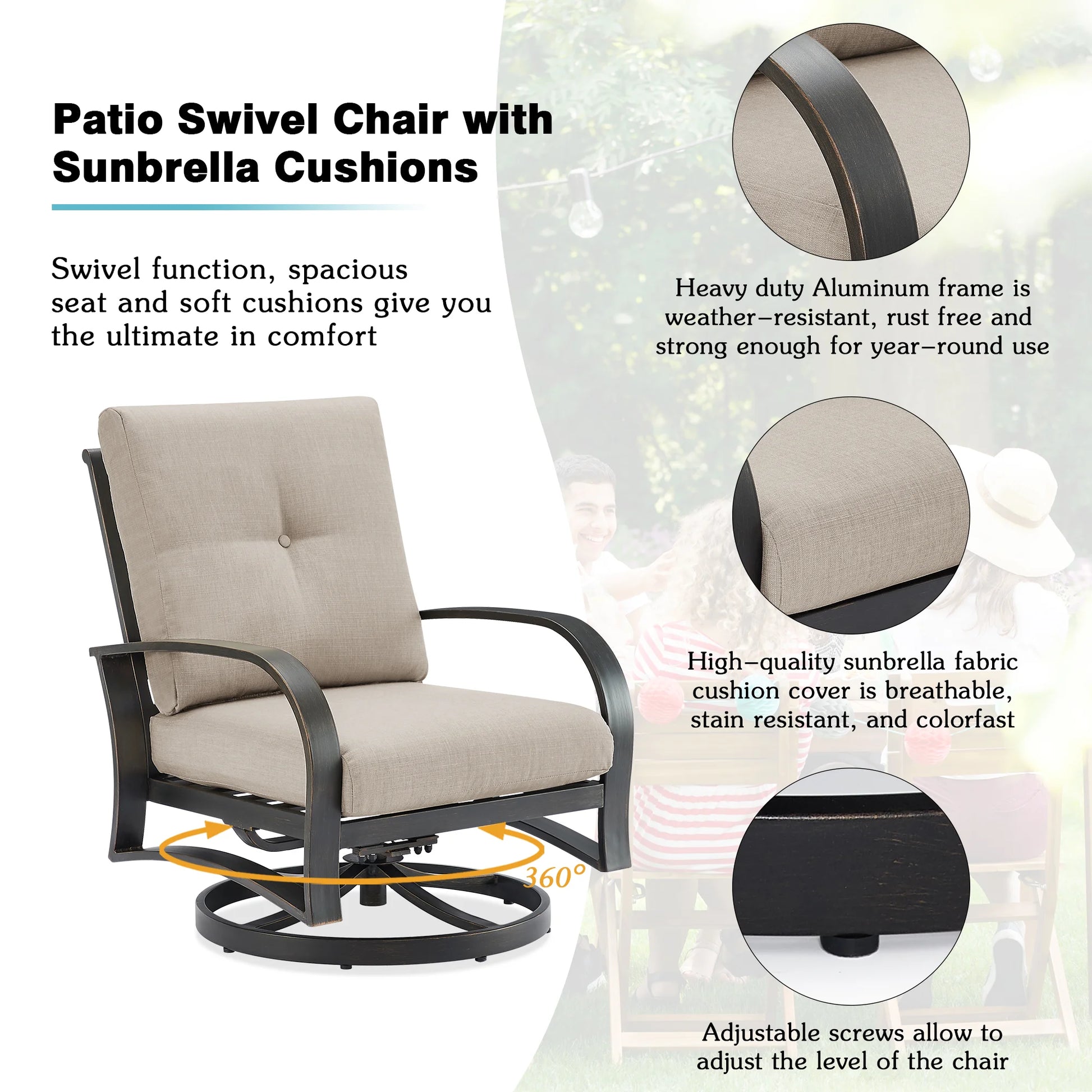 Upgraded cushions feature fade-resistant, stain-proof Sunbrella® fabric—the gold standard for outdoor furniture. Thick high-resilience foam filling offers cloud-like support, while breathable fabric prevents heat buildup.