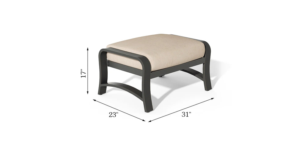Rust-proof aluminum frame and soft Sunbrella cushion make up this classic yet stylish ottoman. The durable construction will make the ottoman last for long-term use. The Sunbrella cushion cover is removable, so it's easy to throw them into the washing machine when a quick clean is needed.