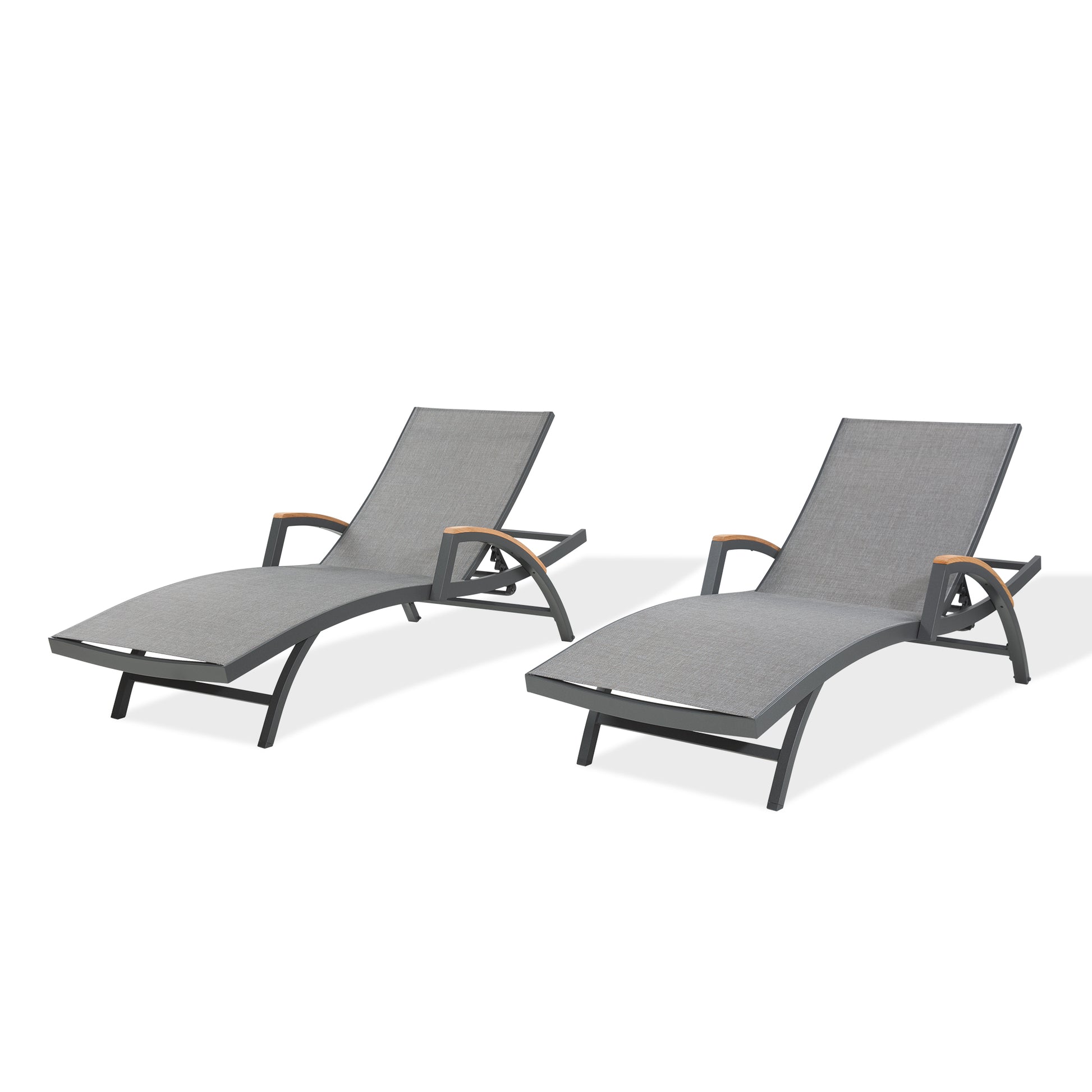 Chambray Outdoor Aluminum Armrest Chaise Lounge Chairs With Phifertex® Sling Fabric (Set of 2)