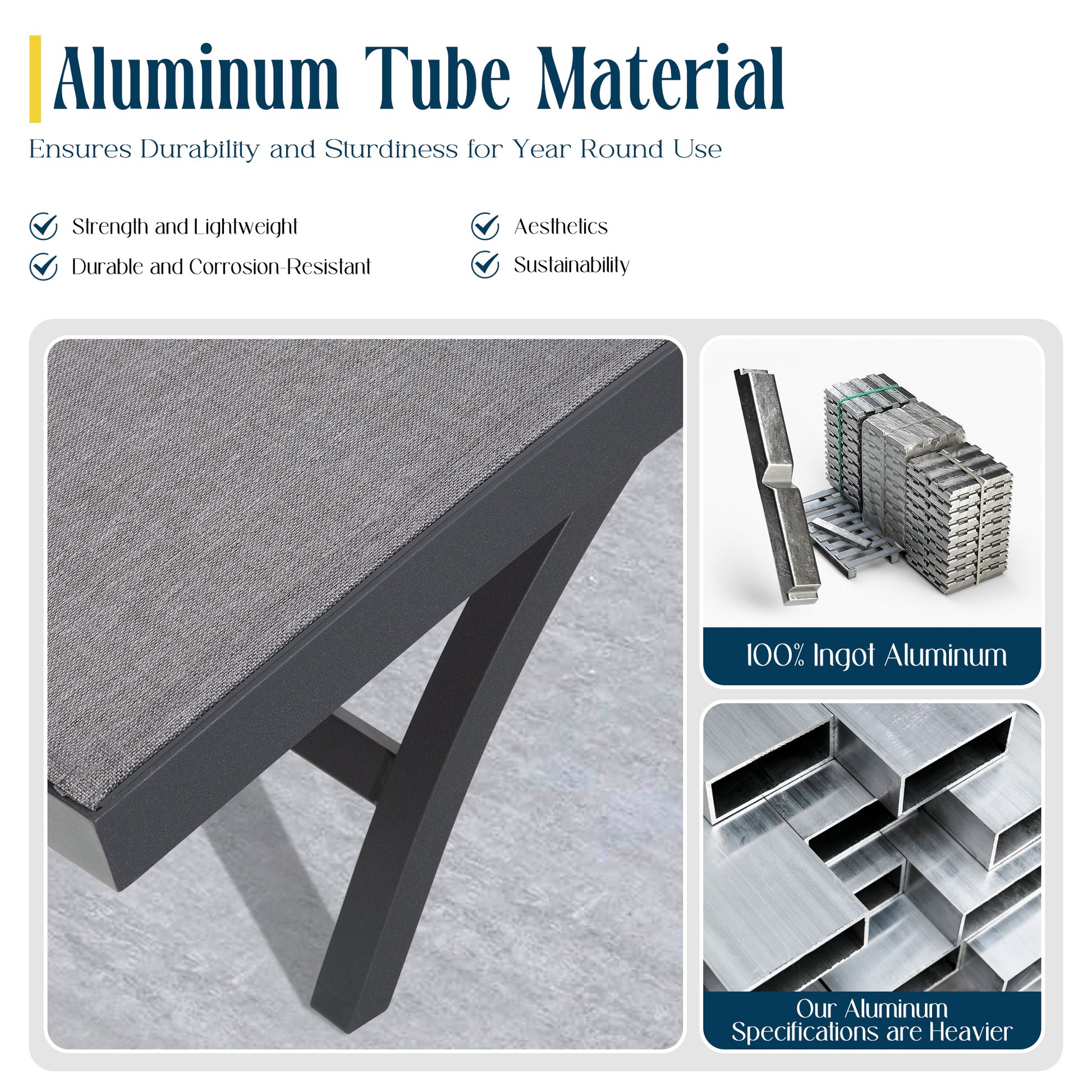 - Durable frame: Constructed with rust-free aluminum frames, weather resistant and strong enough to provide comfortable support.