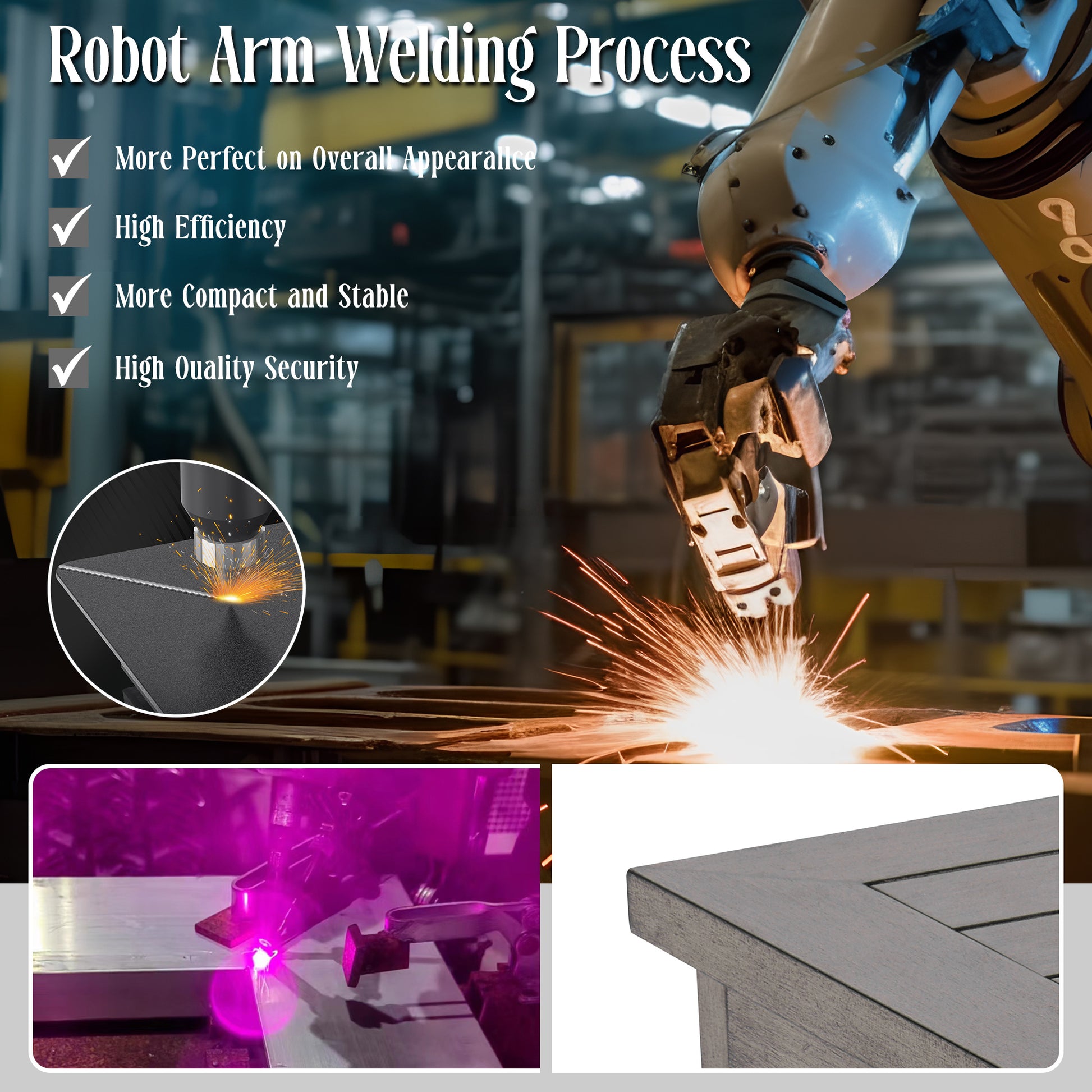 - Contemporary Design: Featuring a sleek gray frame and intricate cross and diamond cutouts on the sides, this table adds a touch of elegance to your outdoor space, creating a modern and sophisticated atmosphere.
