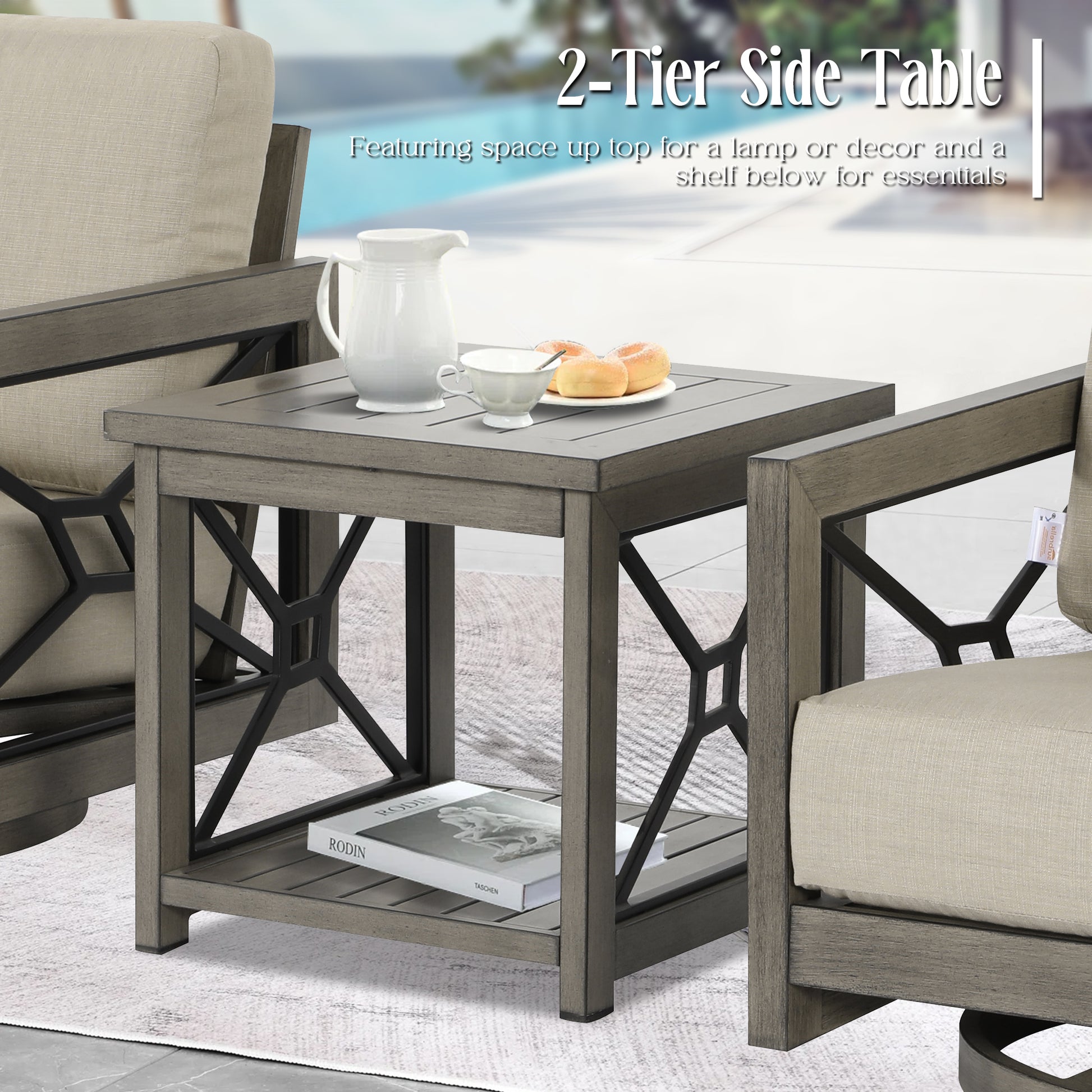 - Robust Construction: Constructed with a durable aluminum frame, this outdoor side table is designed to withstand various weather conditions, ensuring prolonged durability in any outdoor setting.