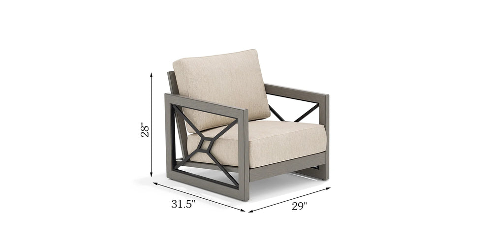 This luxurious and well-made patio 3pcs conversation set includes 2 club chairs and one square side table that will be a stylish addition to your living space. Both the club chairs and side table feature a sleek, cold gray aluminum frame with a distinctive cross-cut diamond pattern on sides, and whole set is powder coated for a smooth, beautiful finish that will last for years to come. Plus, the club chairs are equipped with Sunbrella cushion covers, which are breathable, stain-resistant, and have strong fading resistance, making it an ideal choice for outdoor furniture.
