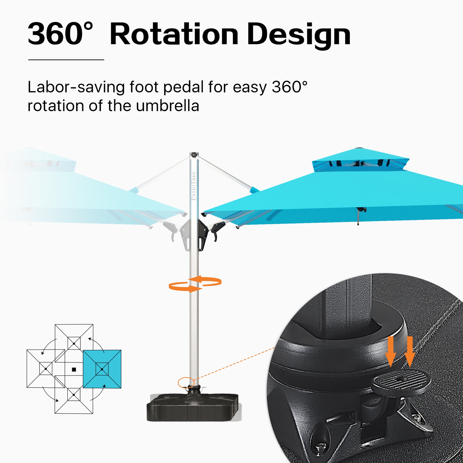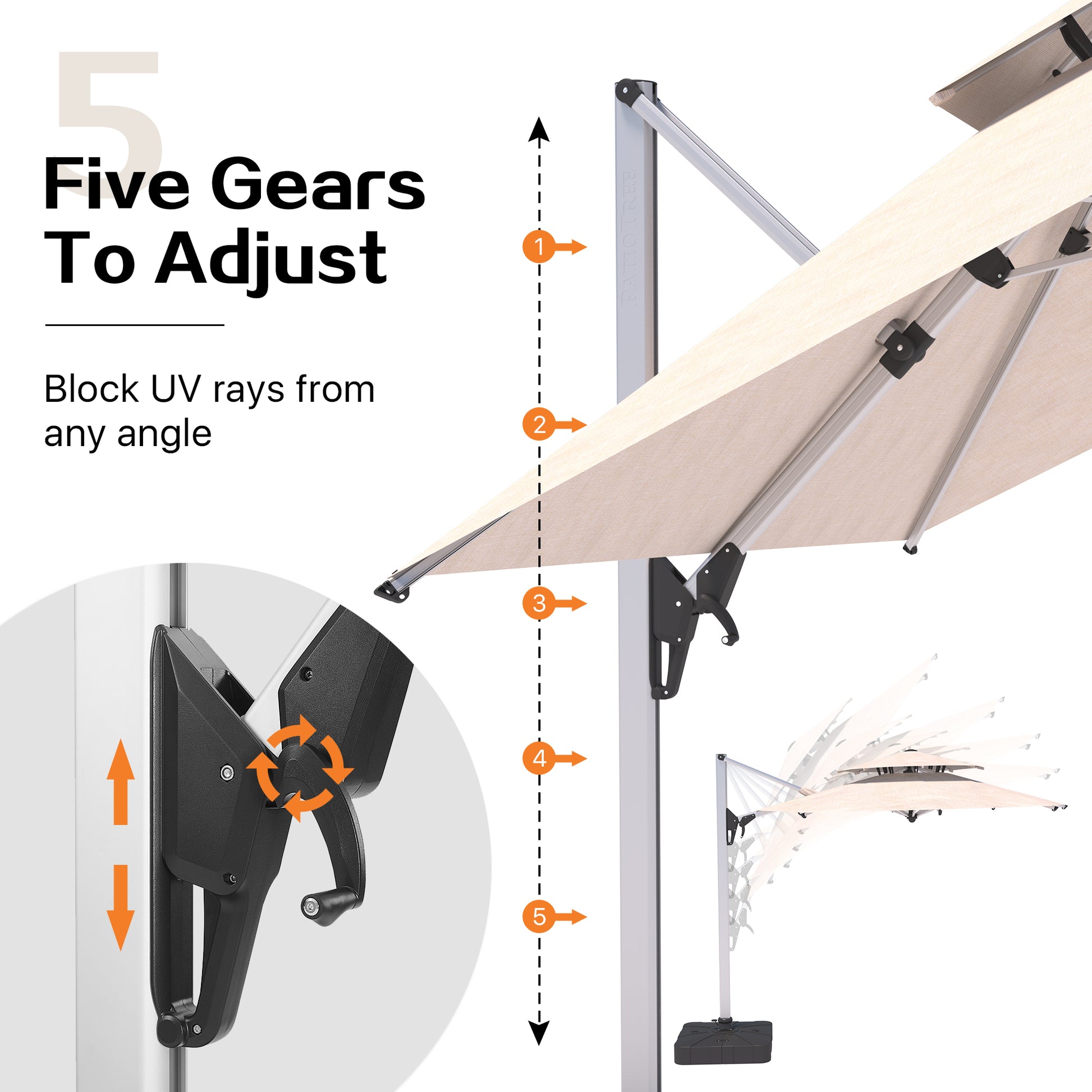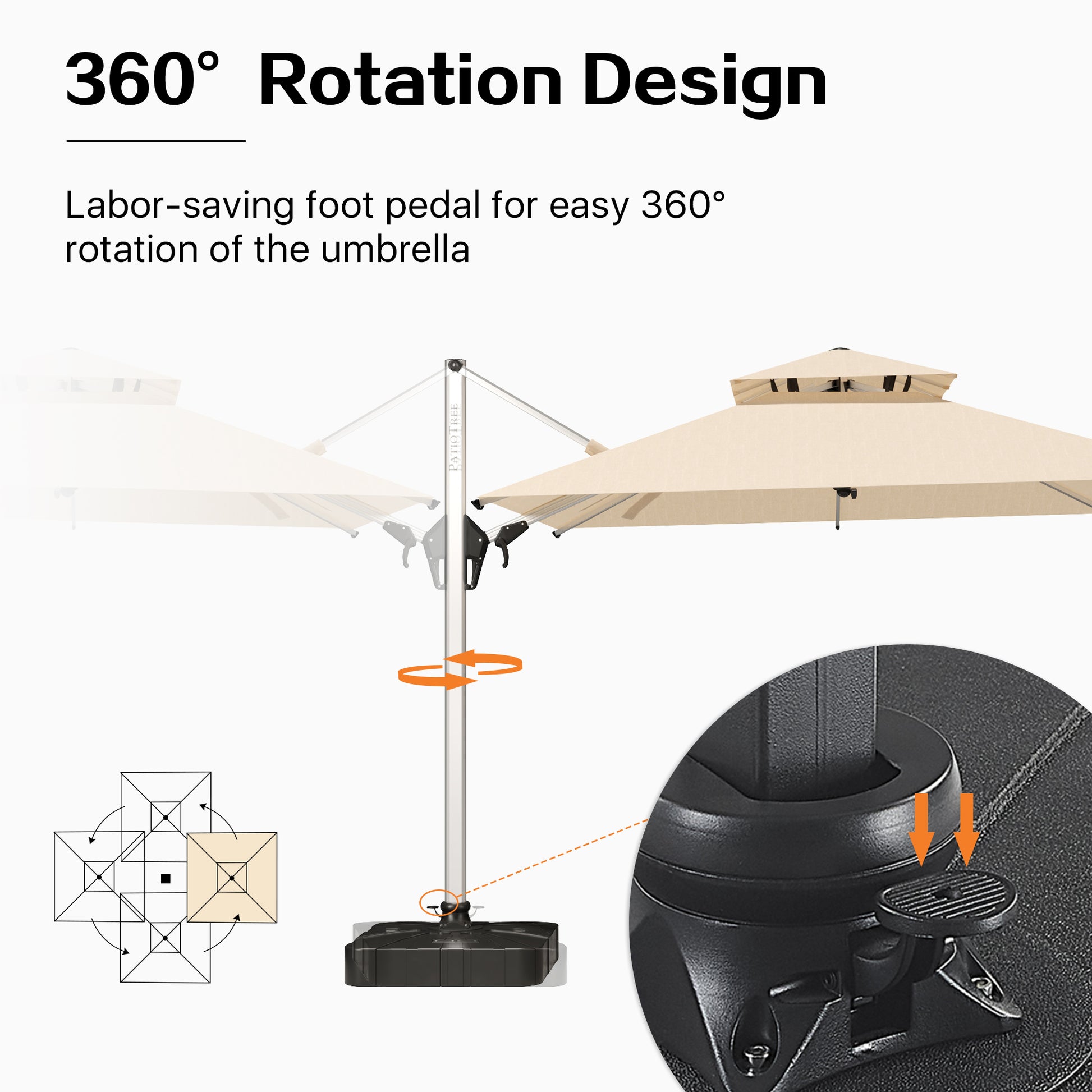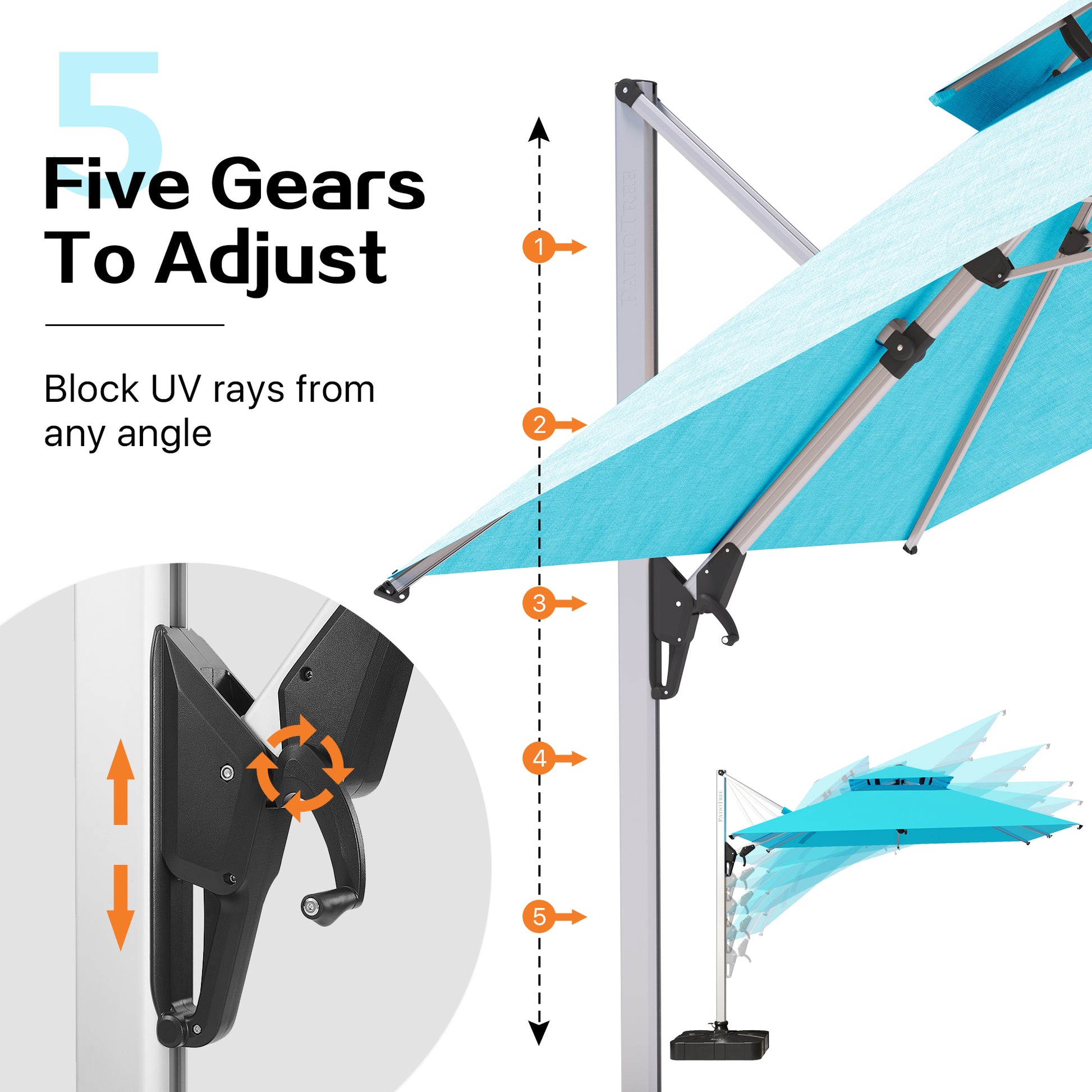 PATIO TREE Milano 10ft Square Cantilever Umbrella Double Top