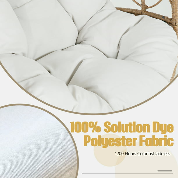 If you're looking for the perfect perch for an indoor or outdoor space, we are proud to present this classic designed egg chair for you. Crafted from powder-coated steel frame wrapped in high-quality all-weather handwoven wicker, and beautiful natural round rattan weave, this egg chair is not only incredibly durable, but also gives an eye-catching appearance. Classic colors blend well with a variety of decorative styles, ergonomic thick cushion and headrest pillow provides you the ultimate comfort. In particular, the 360-degree swivel function allows you to rotate and communicate in any direction. Besides, the 100% solution dyed polyester fabric is fade resistance, and stain resistance. You will be relaxed and appealing when the sun shines through the natural regular rattan gently touches your skin.