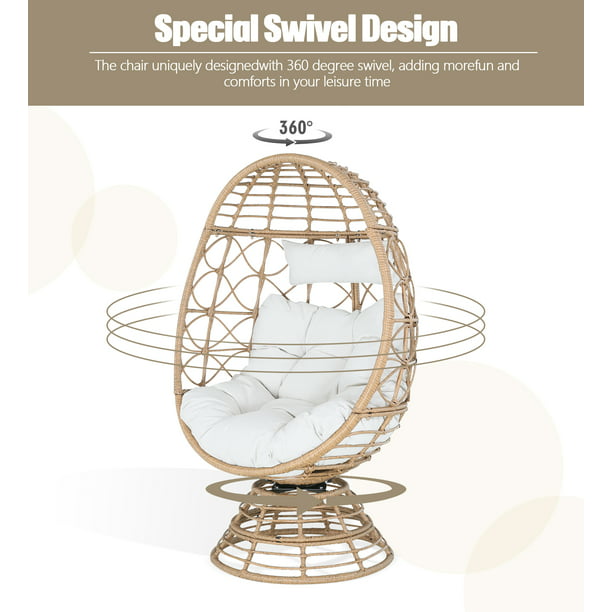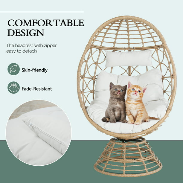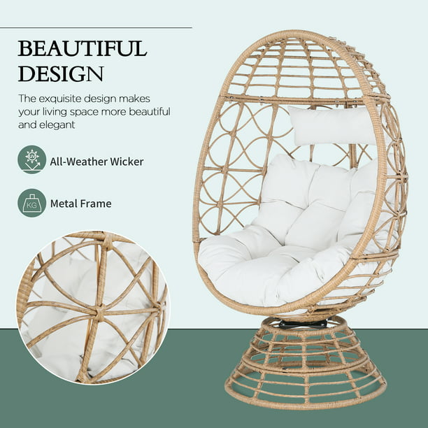 - Stylish Design: The 360-degree rotating base creates extraordinary experience for you. With a gorgeous egg chair shape, the stationary lounger chair encapsulates you in its cozy structure, regular round wicker woven design to give your space an eye-catching modern look.