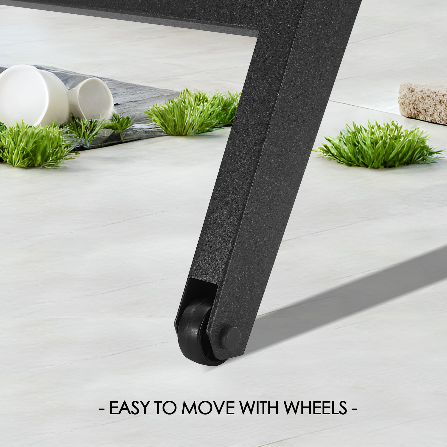 - Easy to move: The hind legs of the lounge chairs are equipped with two wheels, allowing you to move the chair easily on your patio or poolside.
