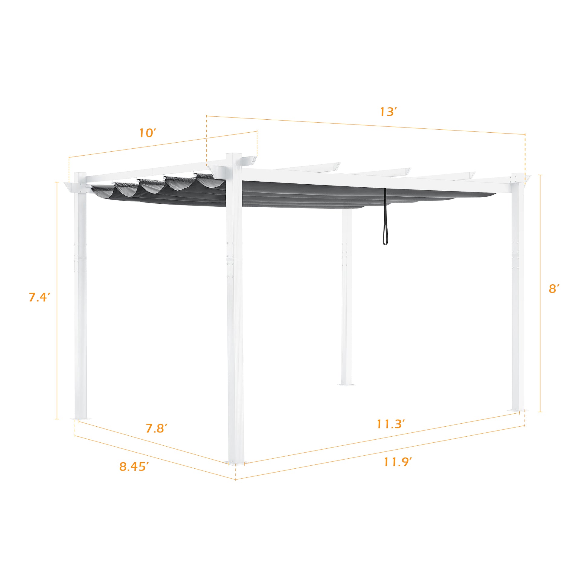 PATIO TREE 10Ft x 13Ft Outdoor Retractable Pergola with Sun Shade Canopy White Heavy-Duty Aluminum Pergola Patio Modern Pergola for Garden Deck Backyard