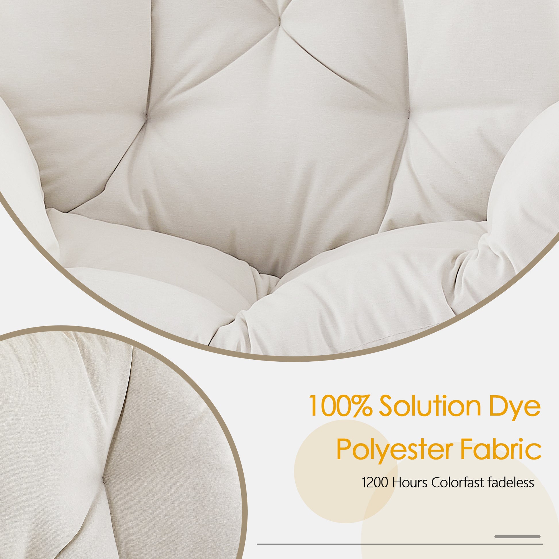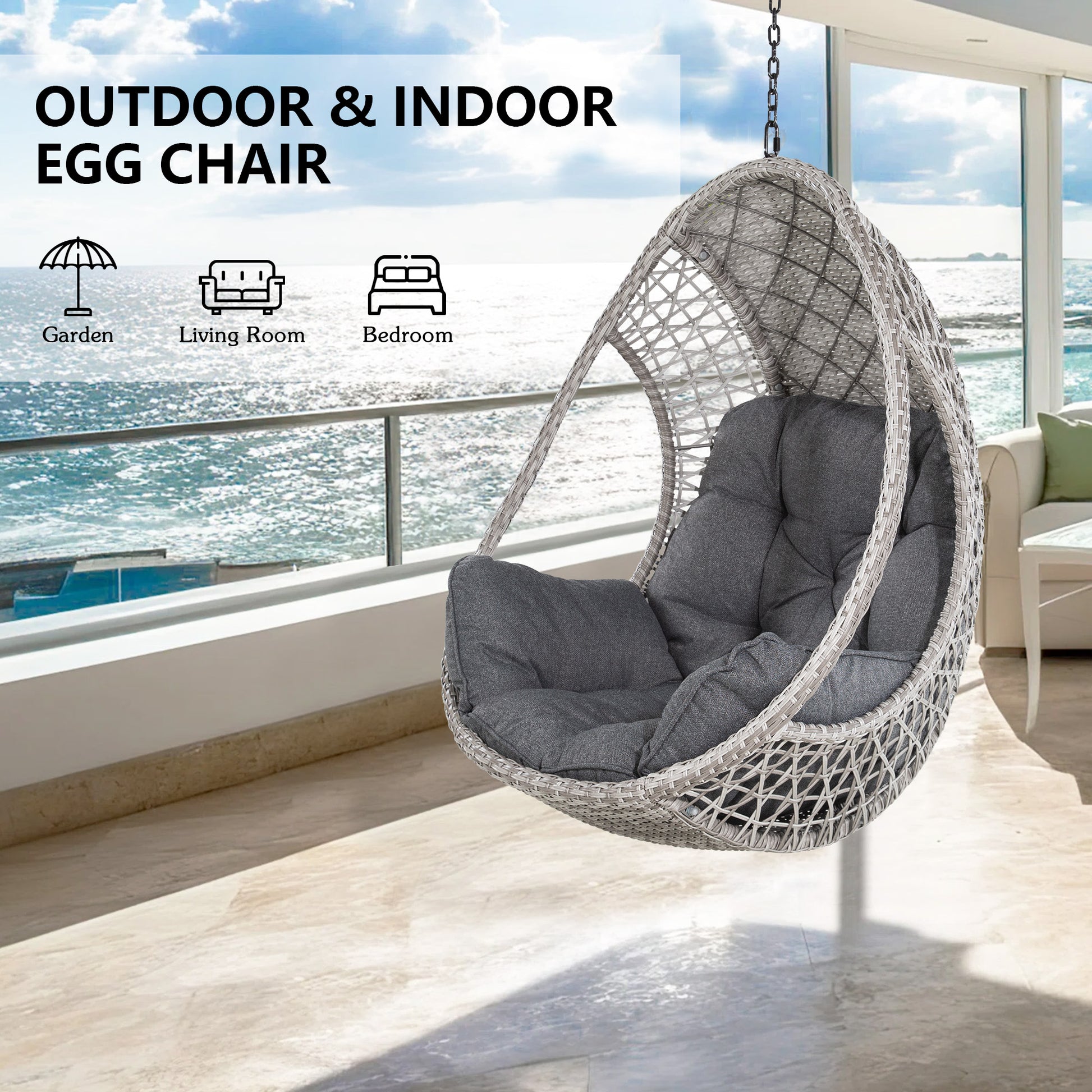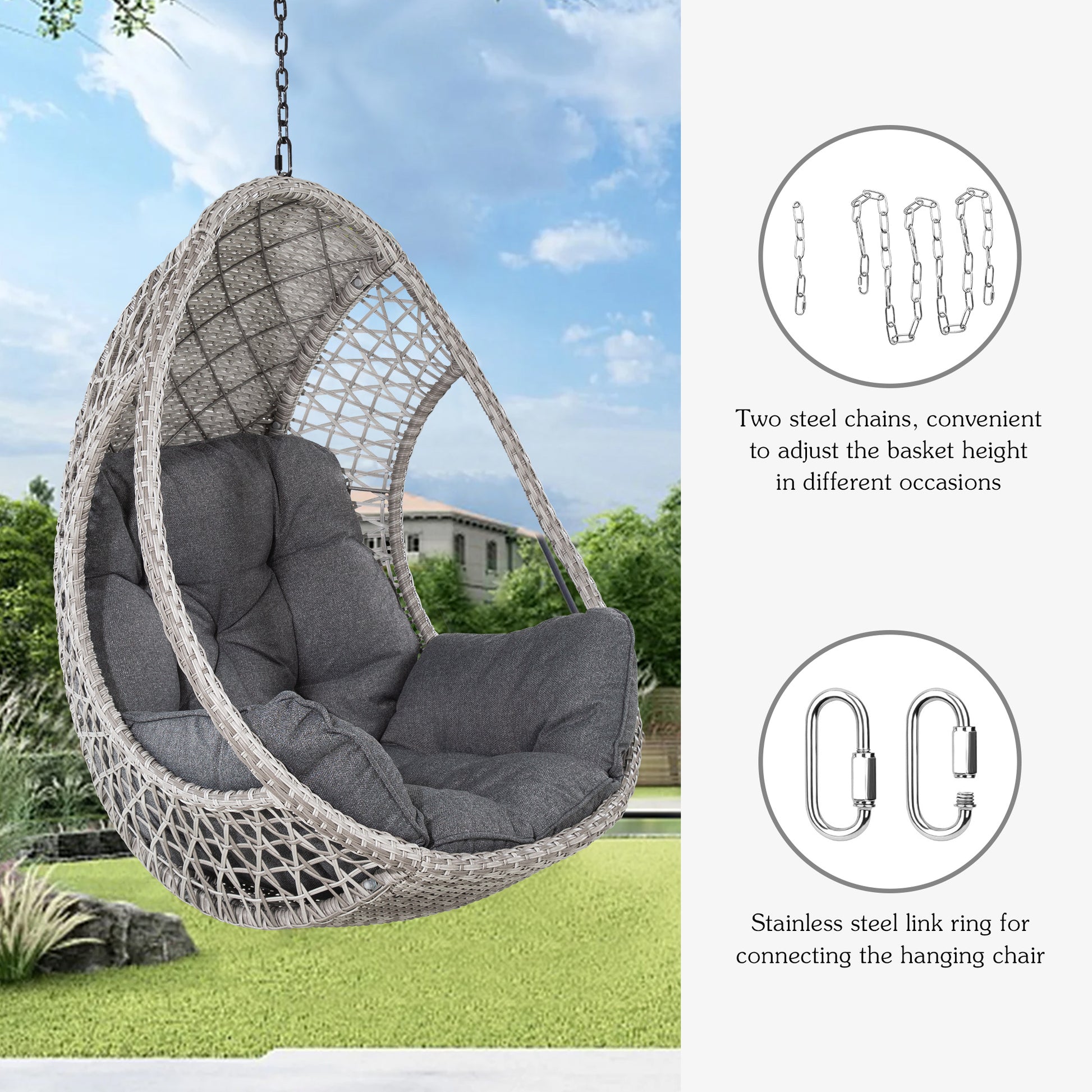 Your outdoor environment must need this beautiful and practical in one hanging chair. The teardrop-shaped chair is made from a rust-resistant powder-coated steel frame and wrapped in off-white hand-woven skin-friendly rattan, which is weather-resistant. In particular, made of 100% solution-dyed polyester stain-resistant fabric with a comfortable filler, the soft cushion can eliminate your fatigue faster. What is more worth mentioning is that the two sides of this swing chair are designed with wide enough armrests, which means you can easily grab the armrests in any situation to get a sense of security. Not only that, the chair can be used in a variety of ways. You can buy a stand and use a short chain to hang from the hanging basket, or buy a long chain to hang from the ceiling of your choice. Such a practical hanging chair must be your choice!