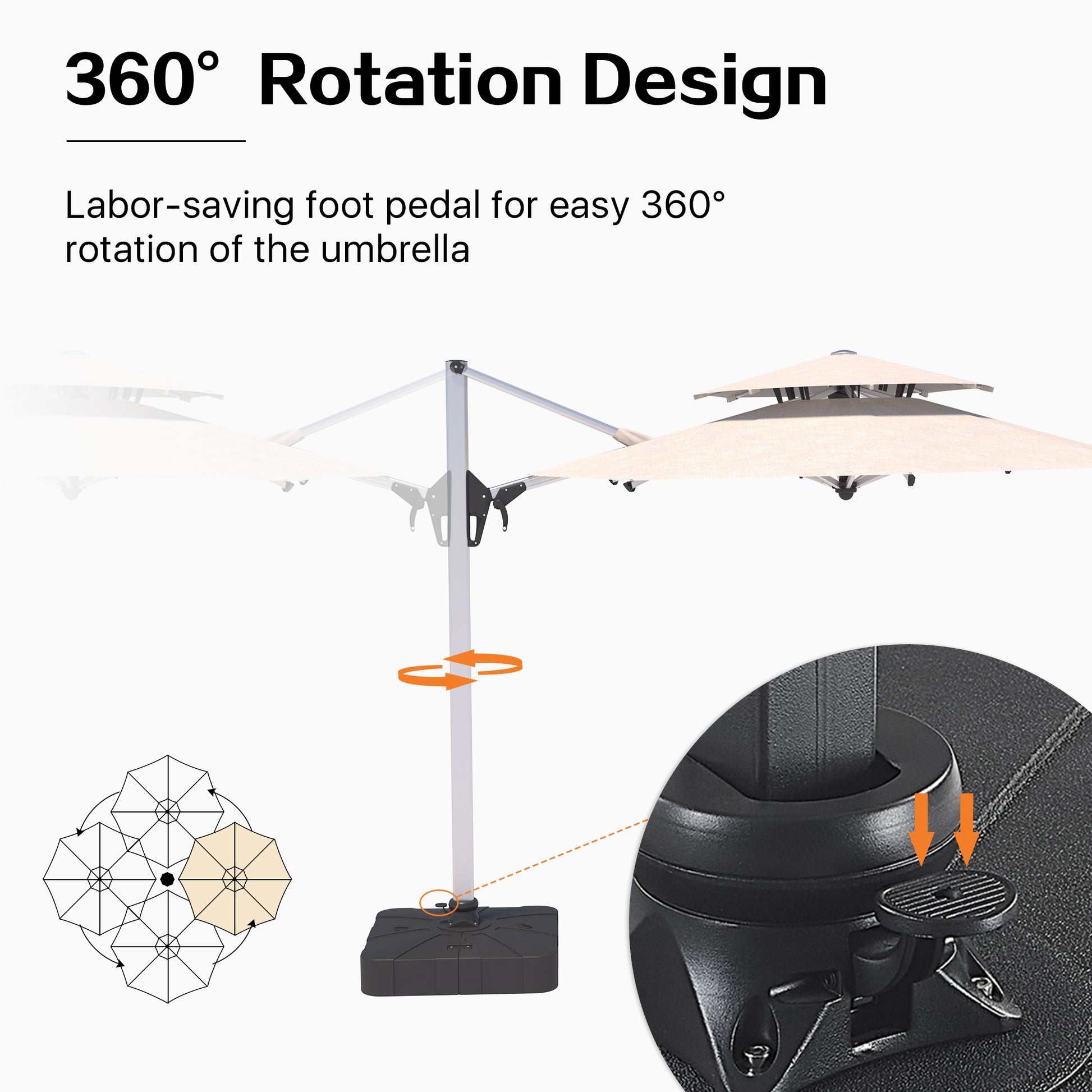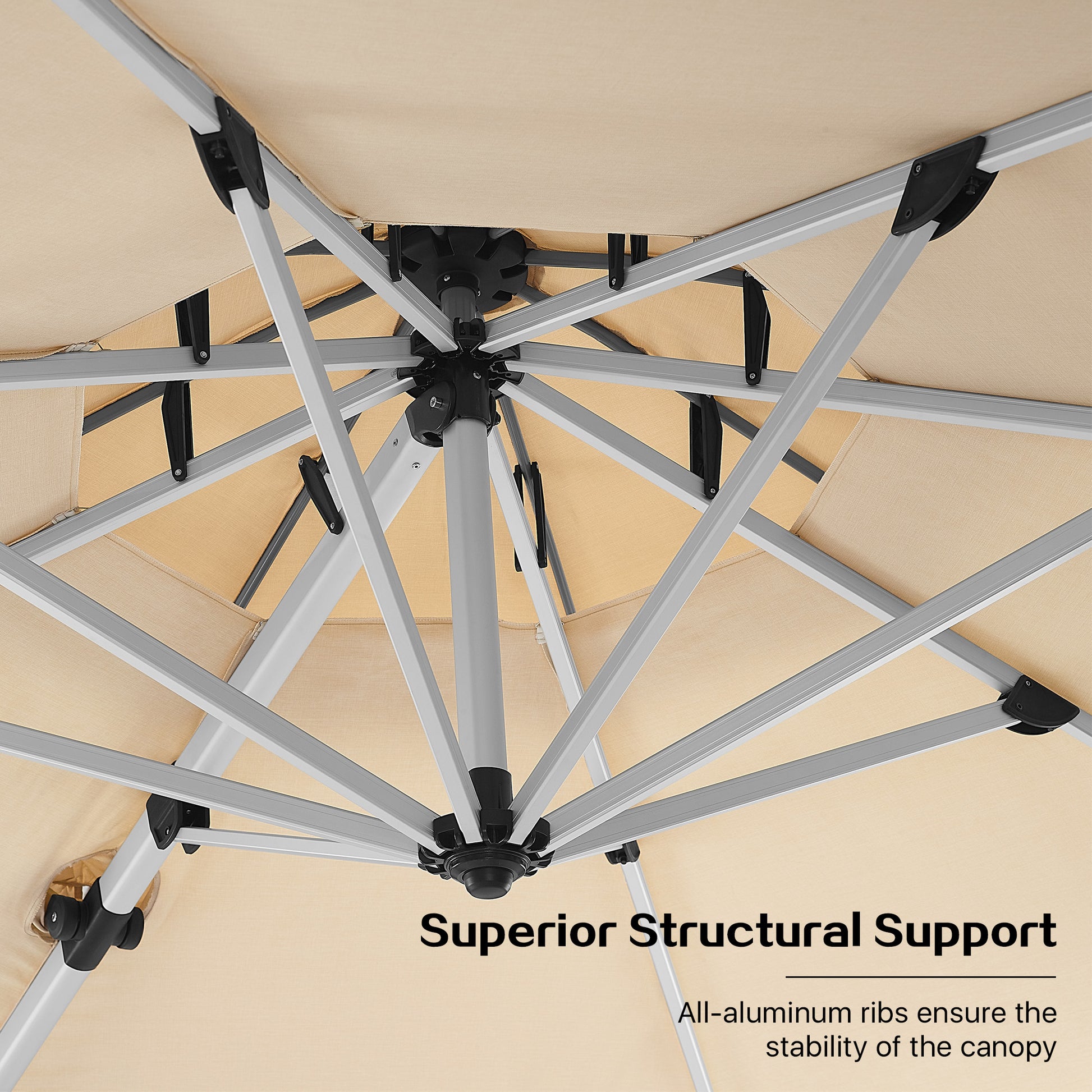 PATIO TREE Milano Double Top 11ft Round Patio Cantilever Umbrella for Deck, Pool, Backyard