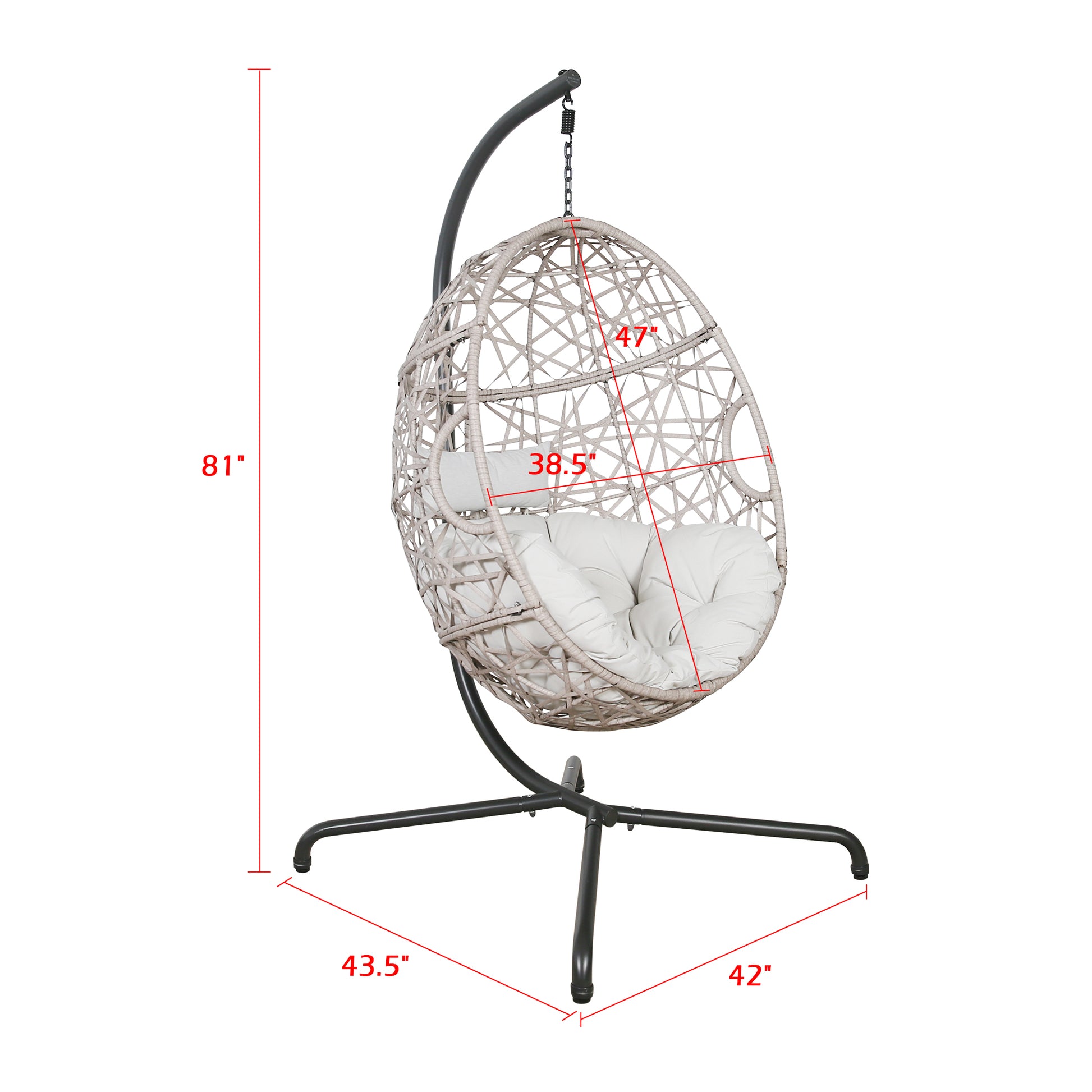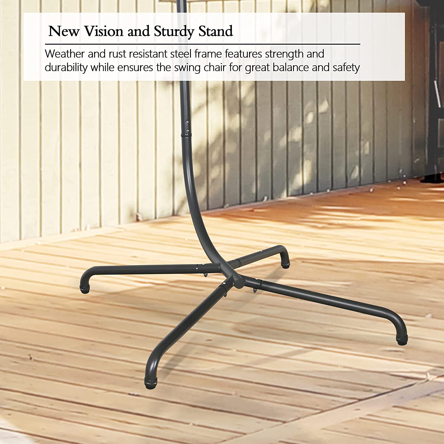 - The included stand enables you to hang this swing chair wherever you like. With front opening design to ensure stability while avoiding tripping.