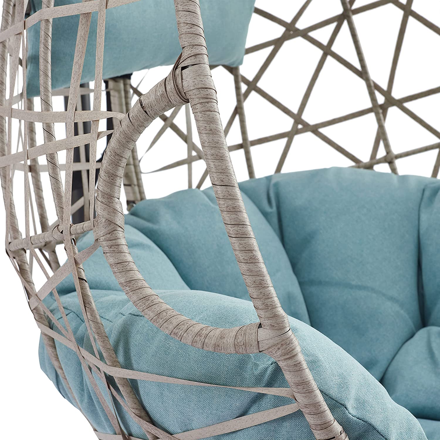Peakhome Furnishings Outdoor/Indoor Wicker Hanging Basket Swing Egg Chair with Stand and Cushion