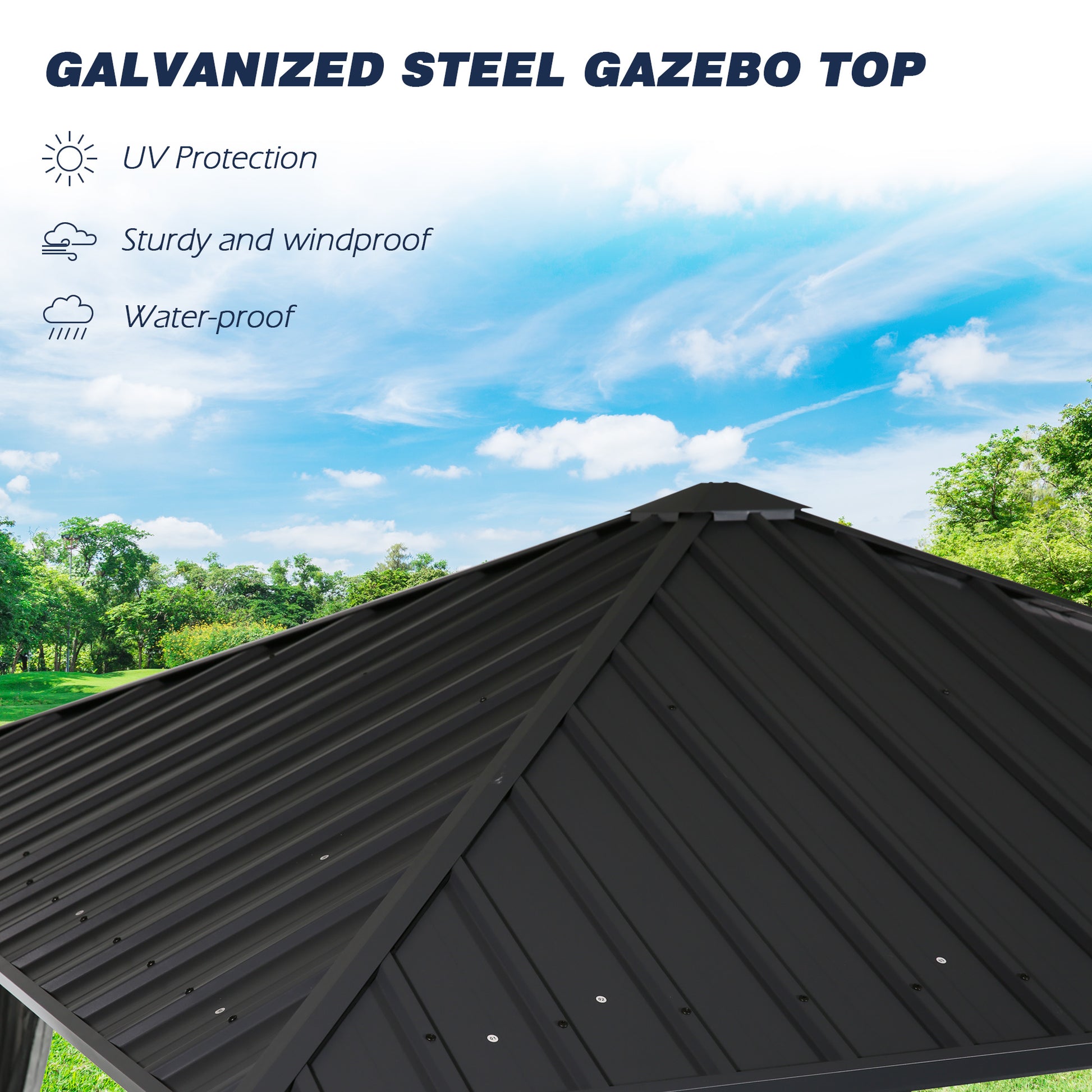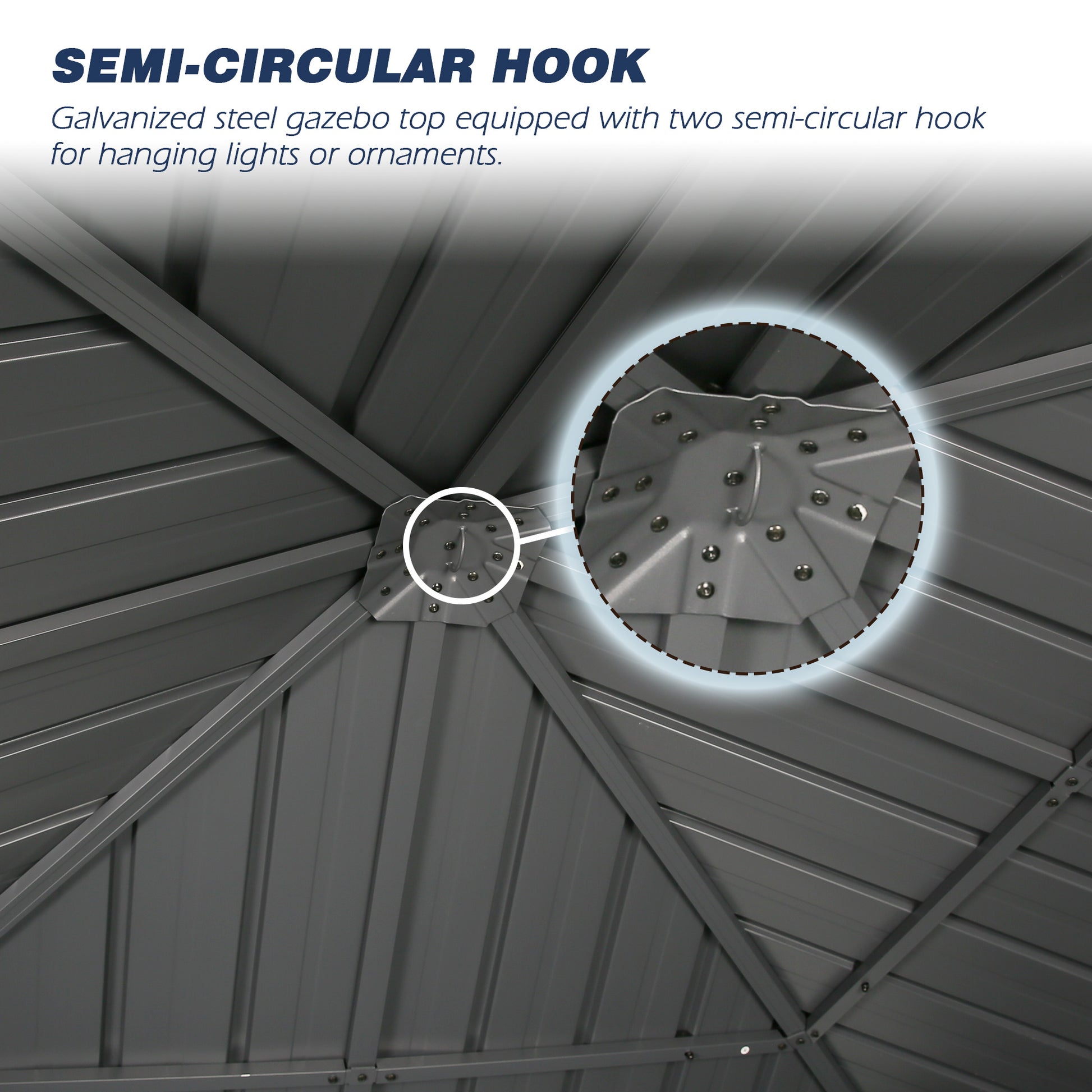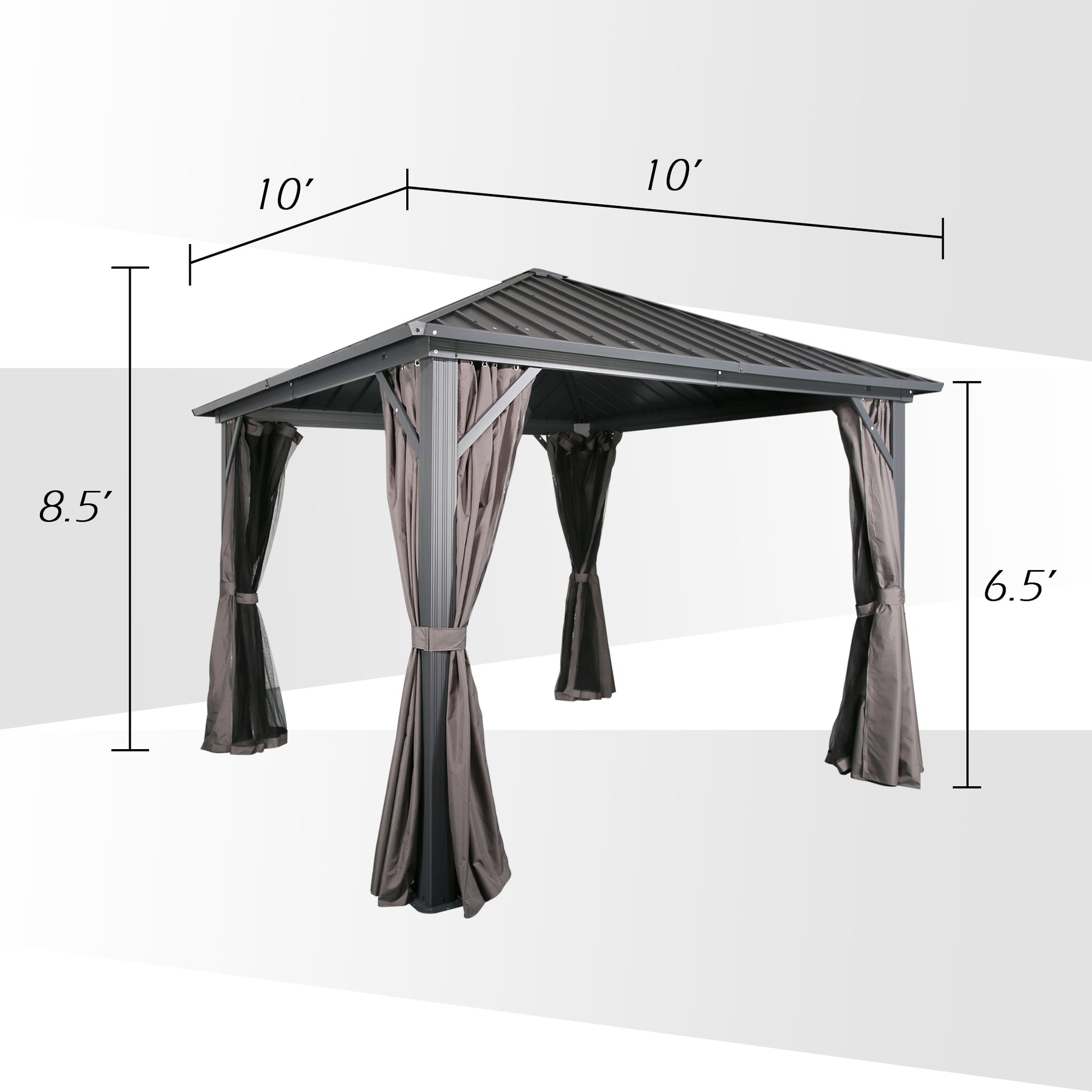 PATIO TREE 10x10 Metal Gazebo with Hardtop, Curtain, Mosquito Netting And Ceiling Hook