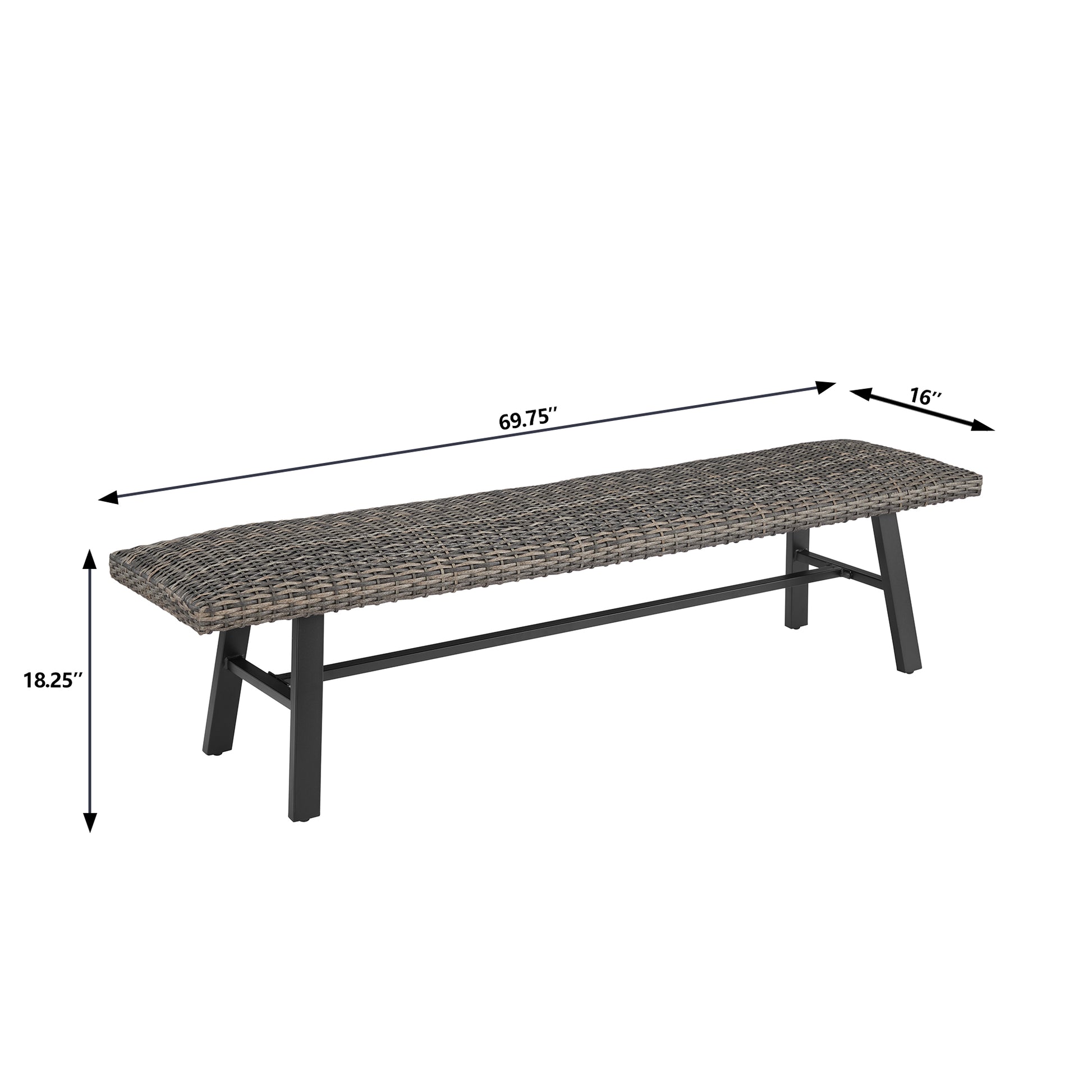 Pavane 70” All-weather Wicker Patio Bench, Mix Gray