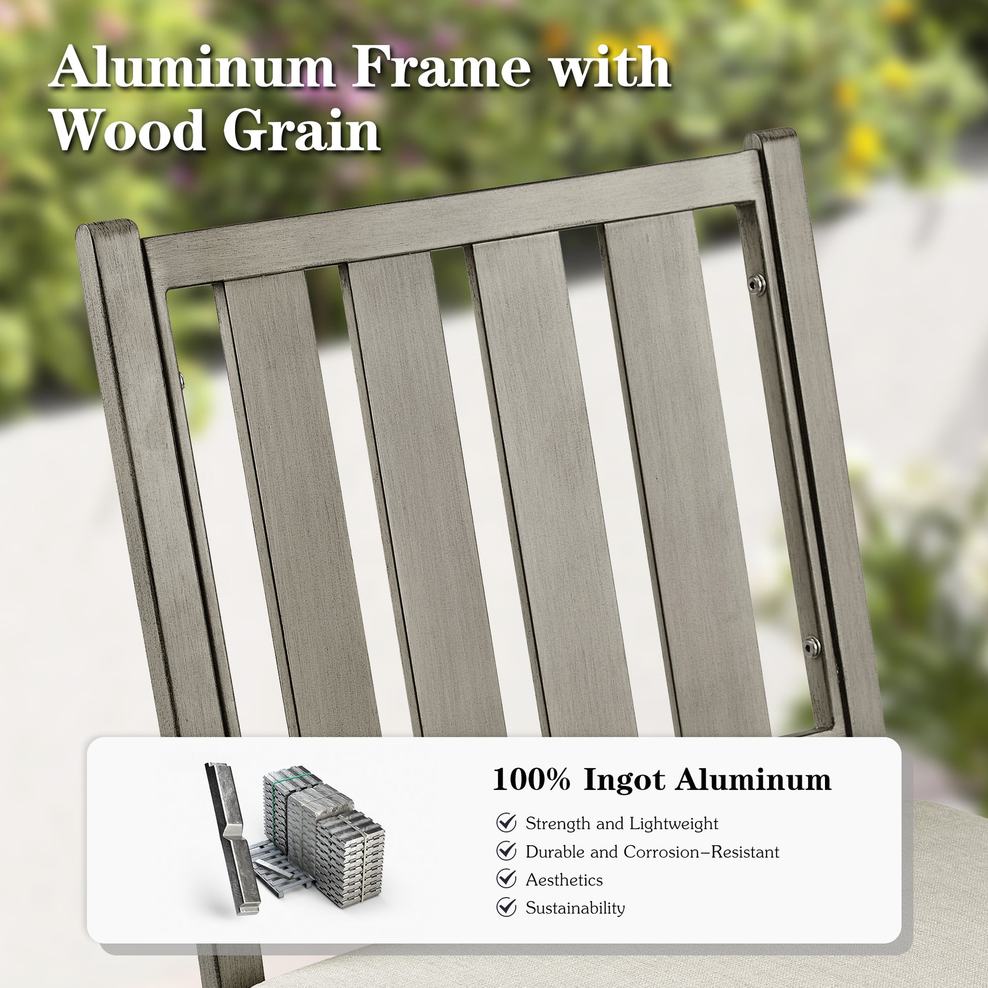 Aluminum chairs: The frame of the dining chair is made of rust-resistant and stable aluminum, and the bottom of the legs have adjustment knobs to ensure that the chair remains level at all times.