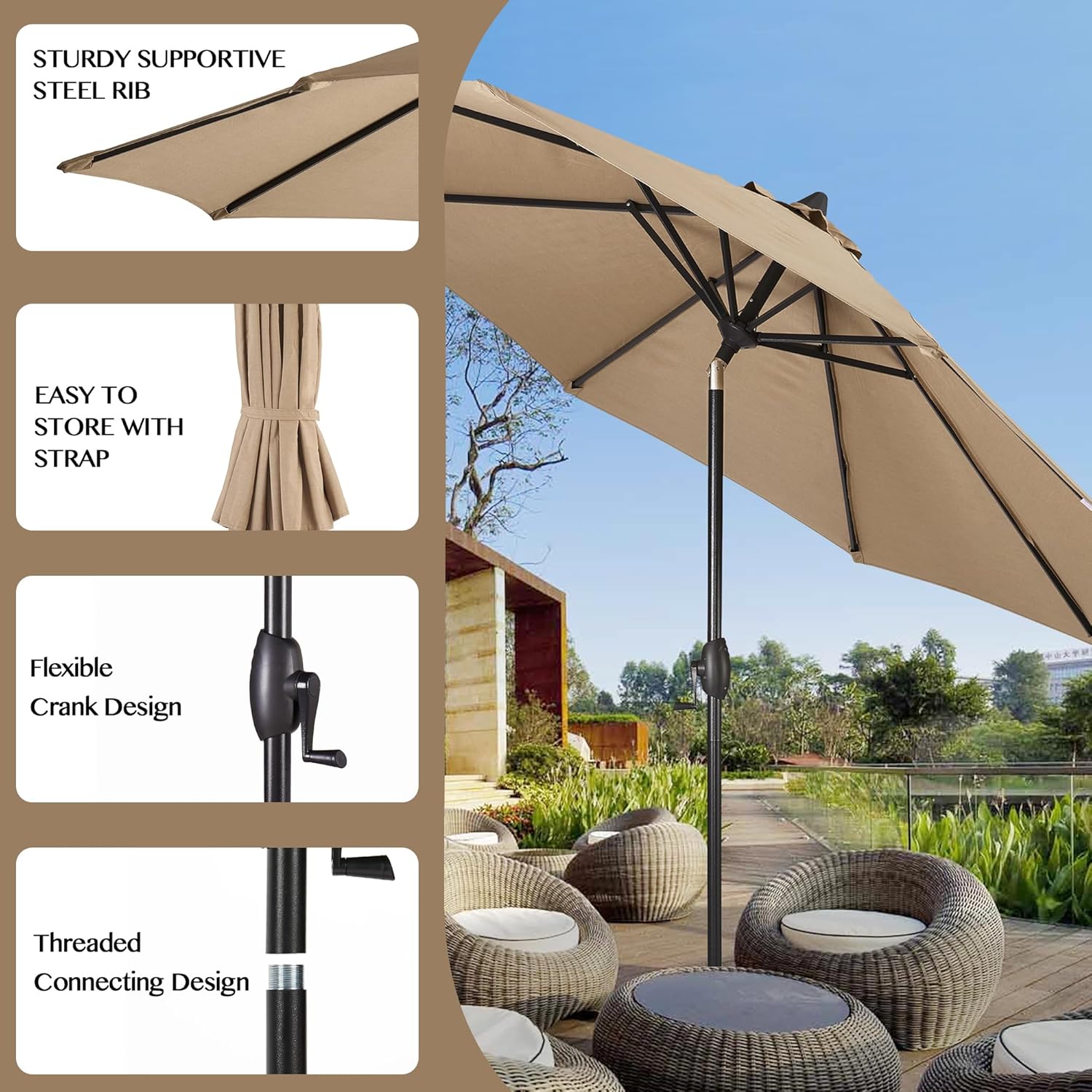 ✅ Smooth Crank Handle: Raise, lower, or tilt the 9ft canopy with one-handed ease.
