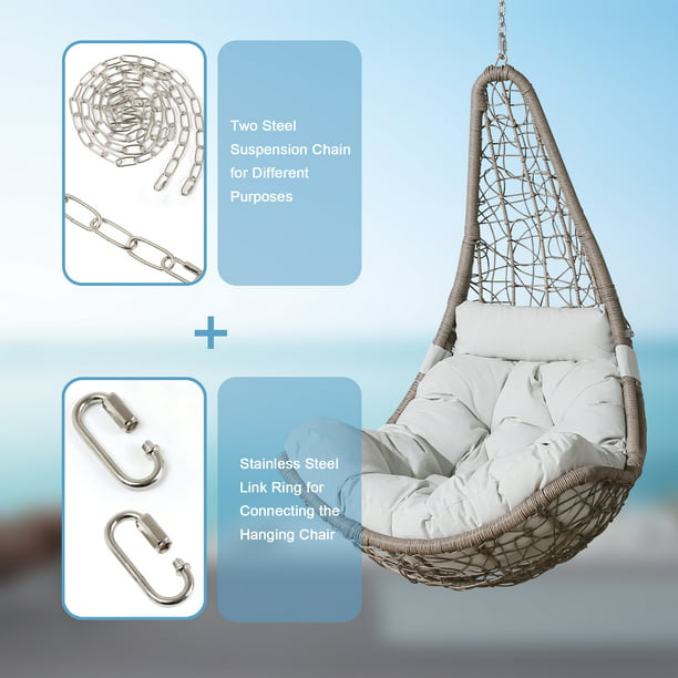 Indulge in serene relaxation with the PEAKHOME Hanging Swing Chair—a harmonious blend of style, durability, and comfort. Crafted with luxuriously woven synthetic rattan and topped with a plush, machine-washable polyester cushion, this chair invites you to unwind in all seasons. Its organic, free-flowing design transforms any space into an oasis of calm, whether nestled on your patio, by the pool, or indoors as a chic accent in your living room or bedroom.