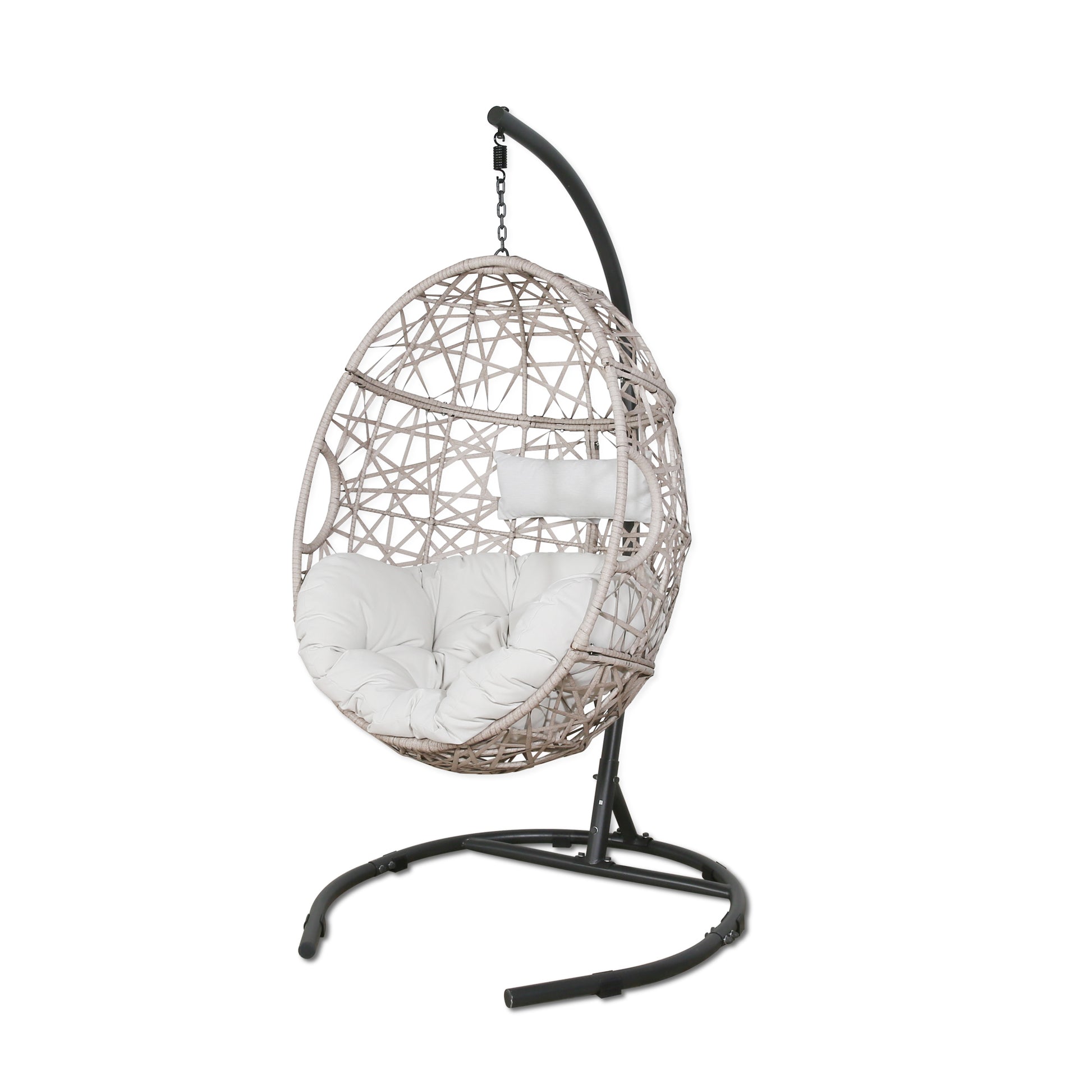 Peakhome Furnishings Swing Outdoor Patio Lounge Egg Chair with Cushion and Stand