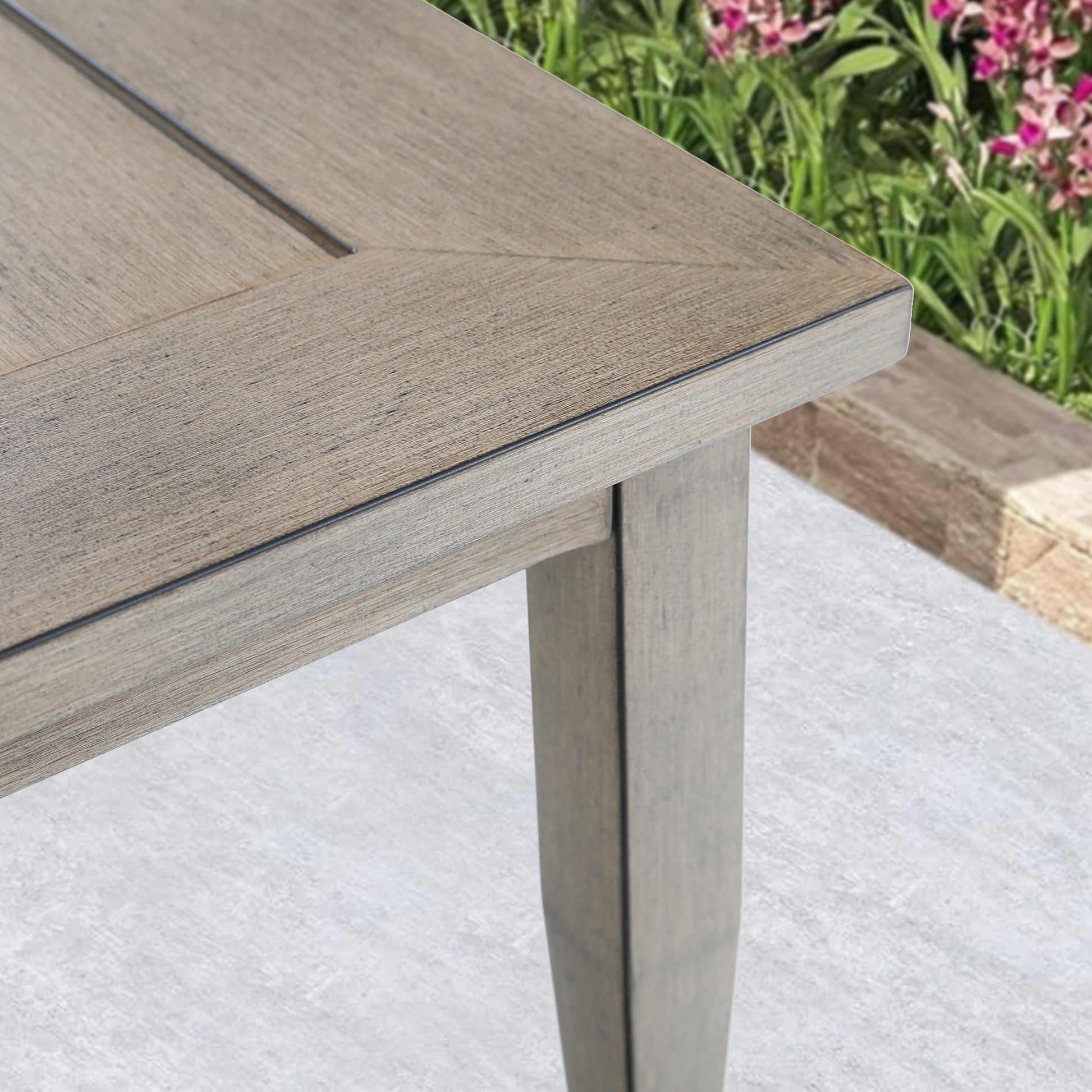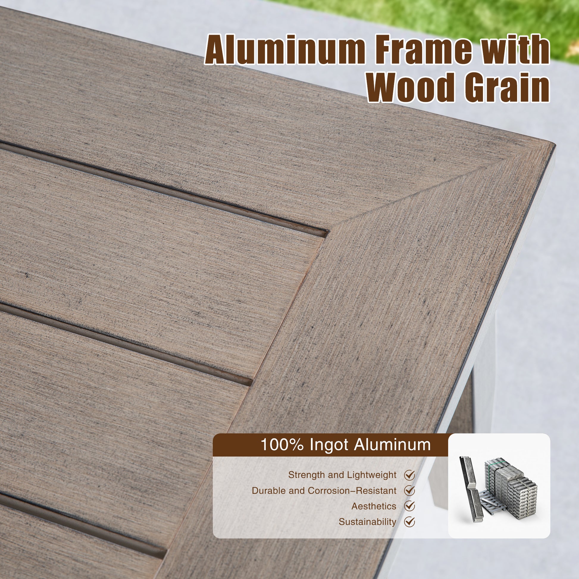Sturdy Construction: The frame is made of rust-resistant aluminum that has undergone brushing and powder coating processes. This results in a unique textured look and ensures the table remains durable and looks as good as new for many years.