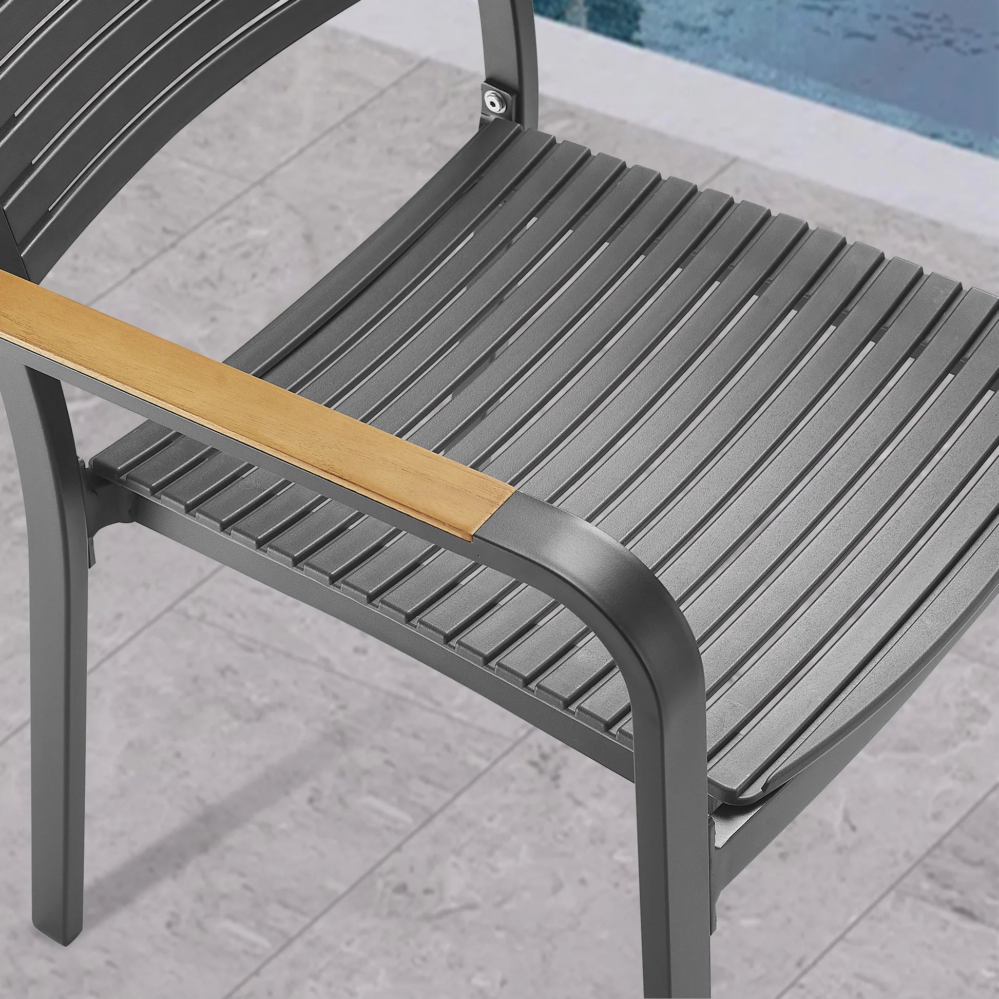 Nuova Aluminum/Teak Outdoor Dining Set With Stackable Chair