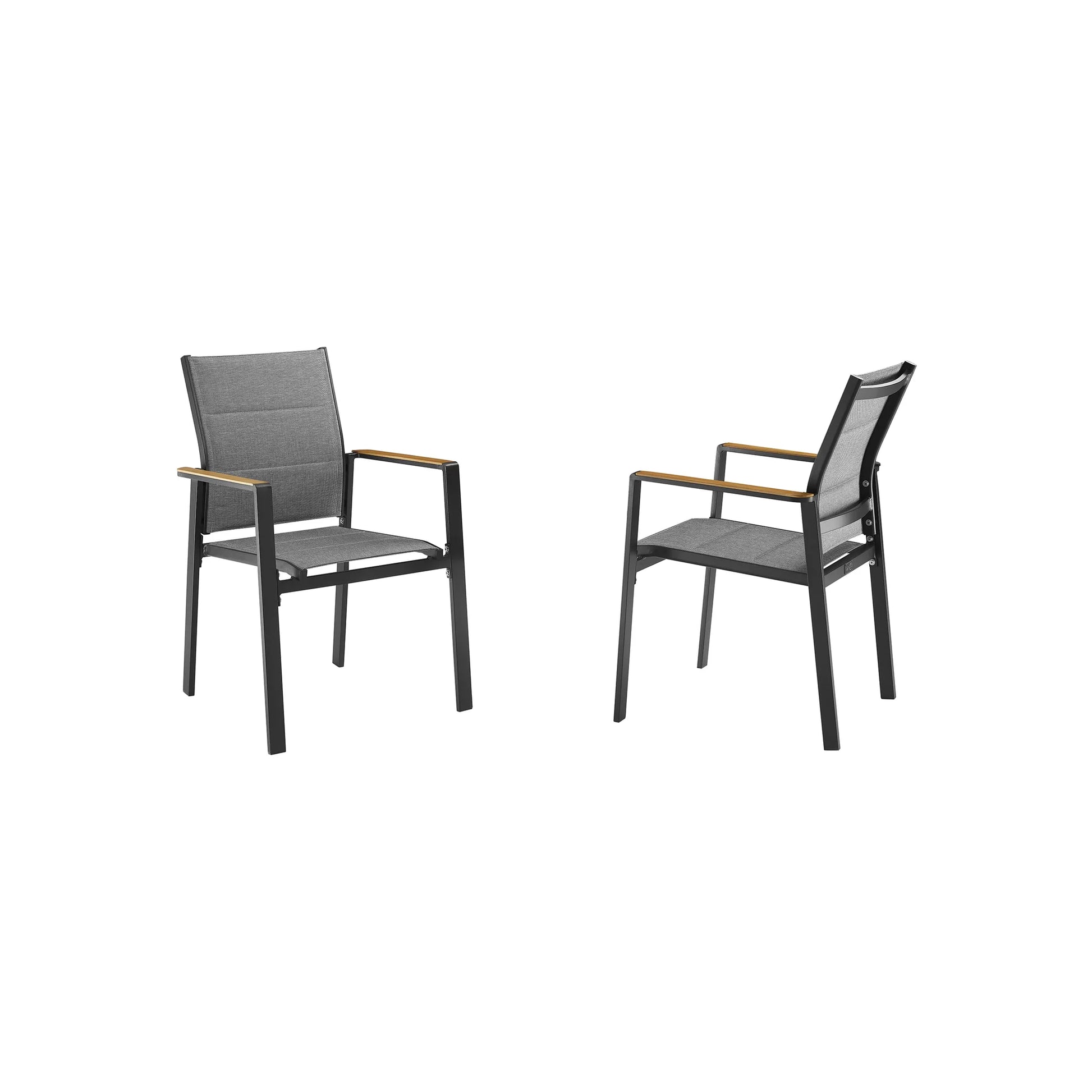 Slam Stackable Patio Aluminum Textilene Dining Chair With Teak Armrests and Foam Padded Set of 2