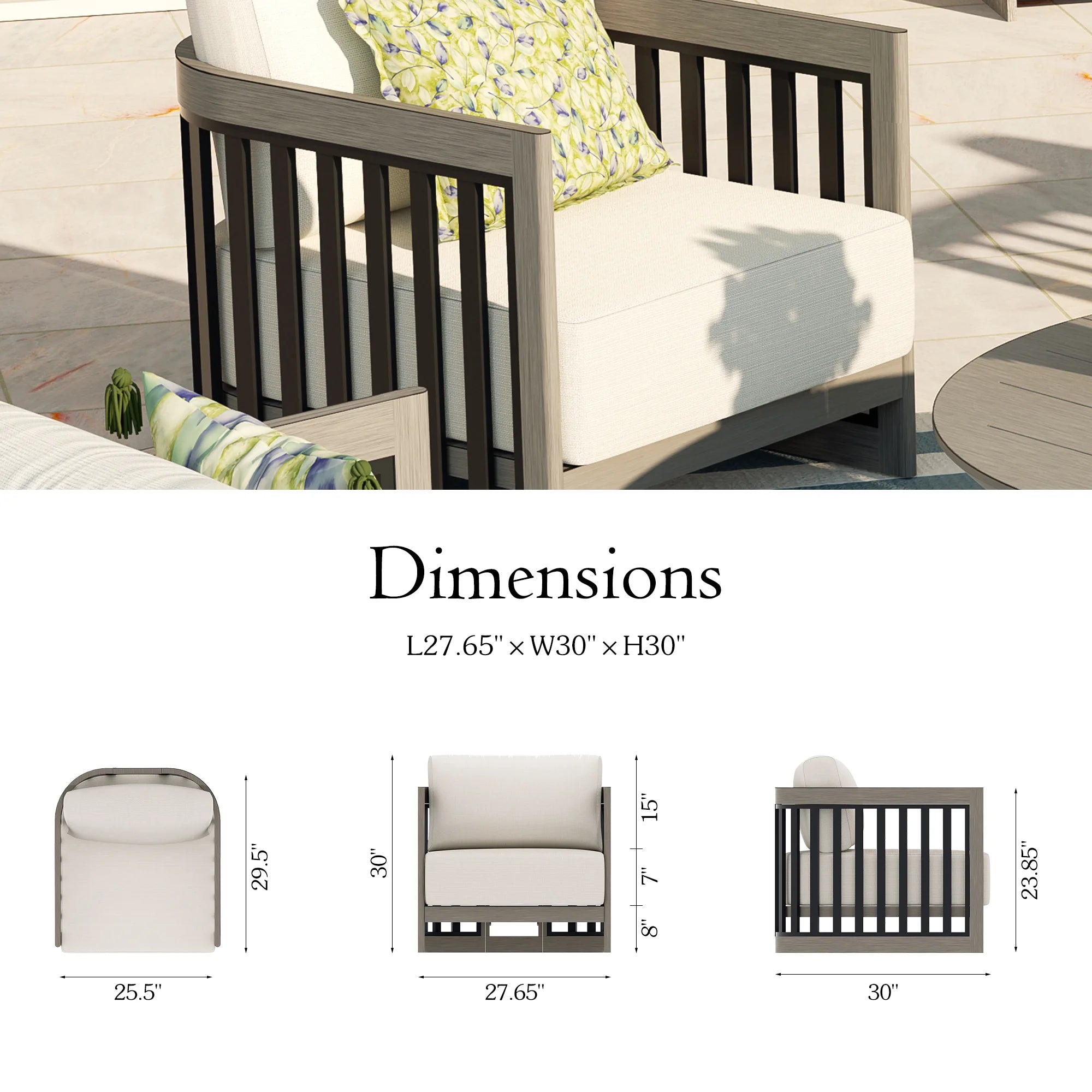 • Comfort Olefin Cushions – Features 7-inch thick seat cushions with premium support, wrapped in fade-resistant Olefin fabric and are equipped with zippers for easy removal and cleaning, perfect for all-day lounging.