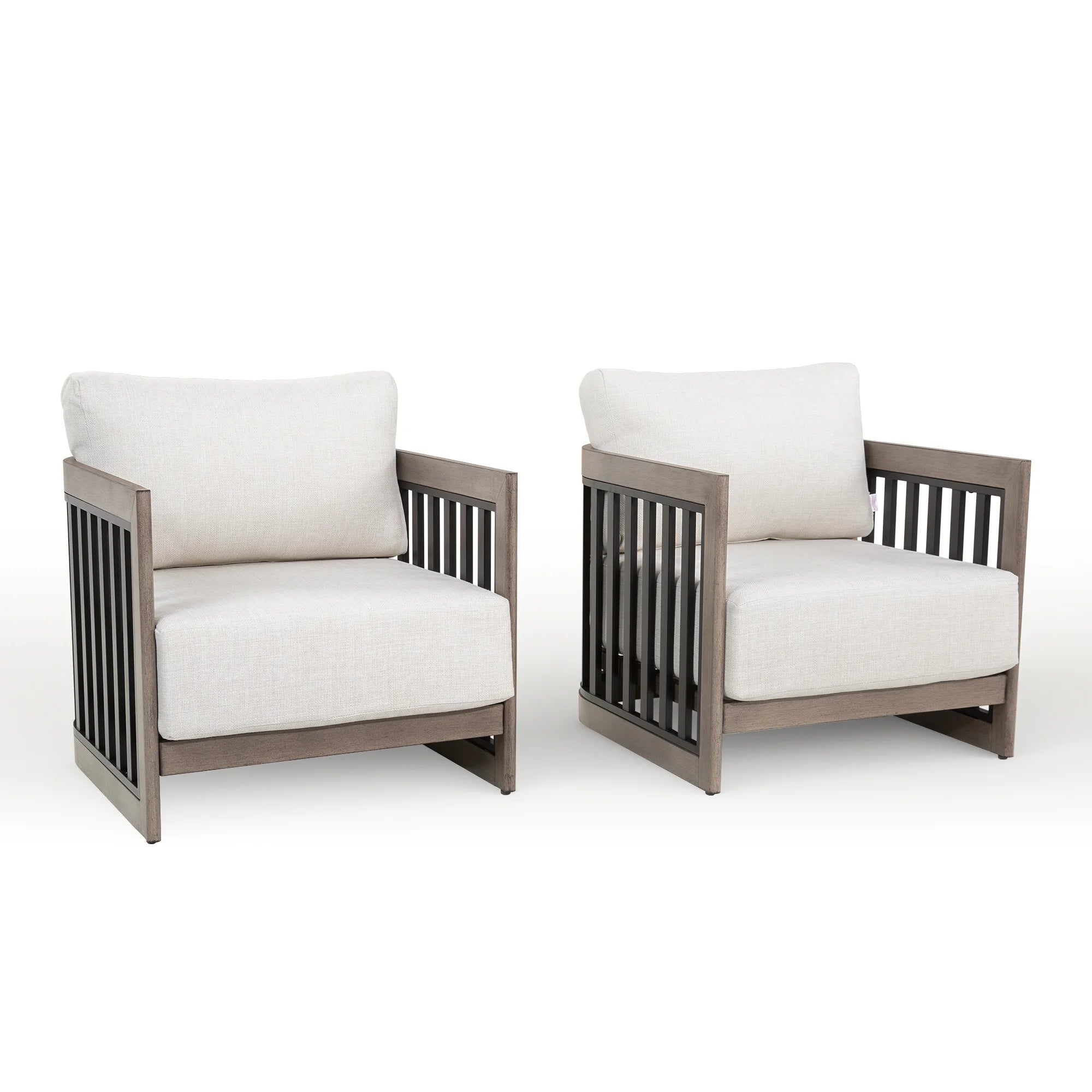Elevate your outdoor living experience with our premium patio club lounge chair. Constructed with a powder-coated aluminum frame, this chair offers exceptional durability, rust resistance, and minimal maintenance for long-term use. The cushions are upholstered in high-quality olefin fabric, featuring zippered and removable covers for convenient cleaning and long-lasting performance in various weather conditions. Designed with comfort in mind, the chair includes 7-inch thick seat cushions that provide excellent support, along with plush back cushions for enhanced relaxation. Aesthetically, the chair showcases a refined silhouette with black vertical side slats and is available in two sophisticated frame finishes: hand-brushed smoke gray or heat-transferred teak. Combining luxury with functionality, this lounge chair is an ideal addition to any upscale outdoor setting.