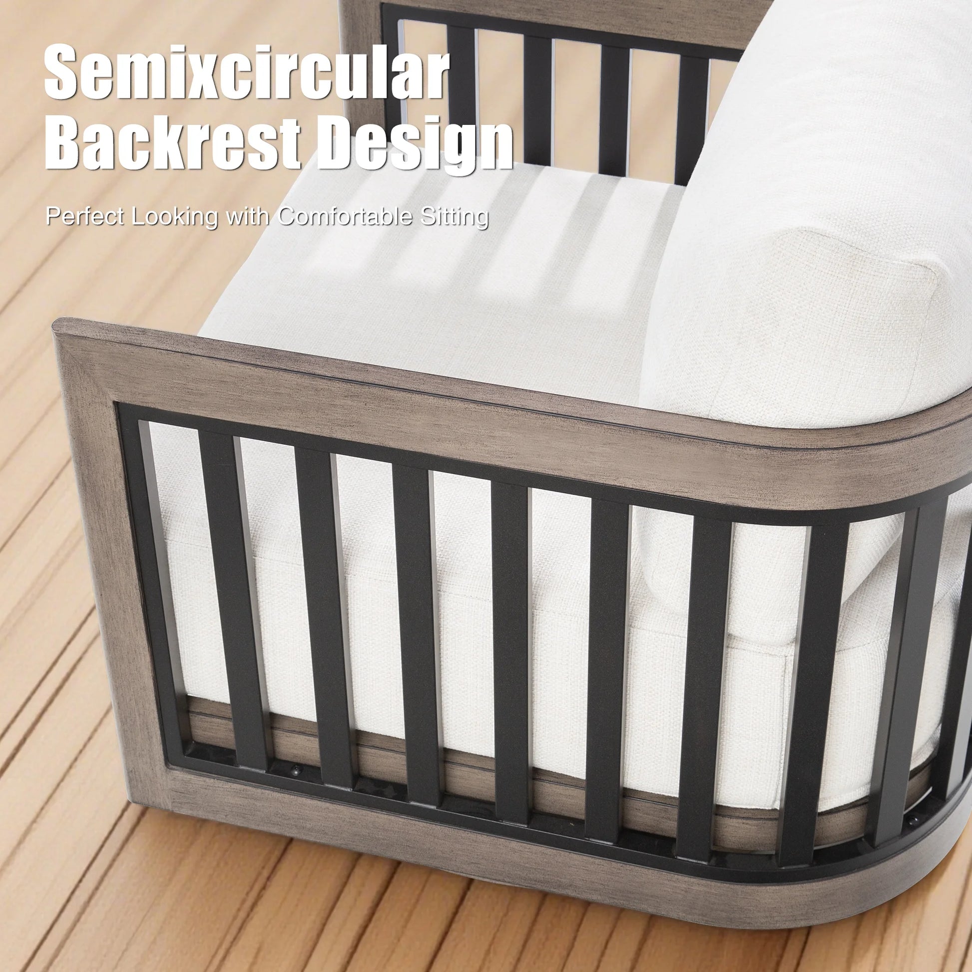 - Comfort Olefin Cushions – Features 7-inch thick seat cushions with premium support, wrapped in fade-resistant Olefin fabric and are equipped with zippers for easy removal and cleaning, perfect for all-day lounging.