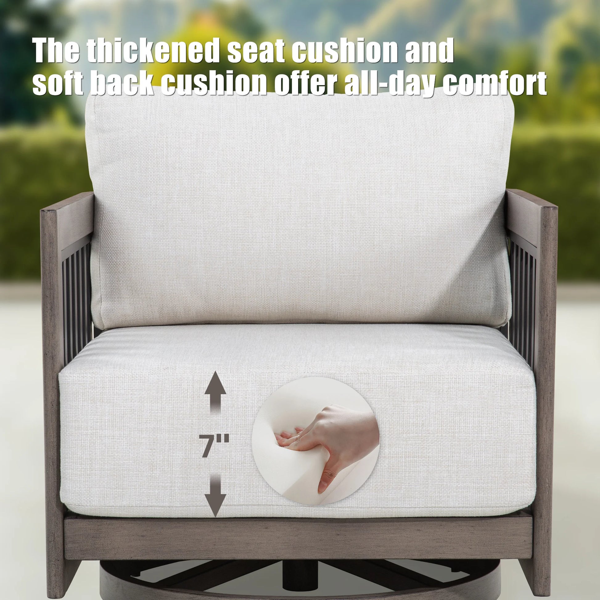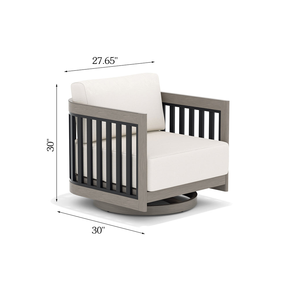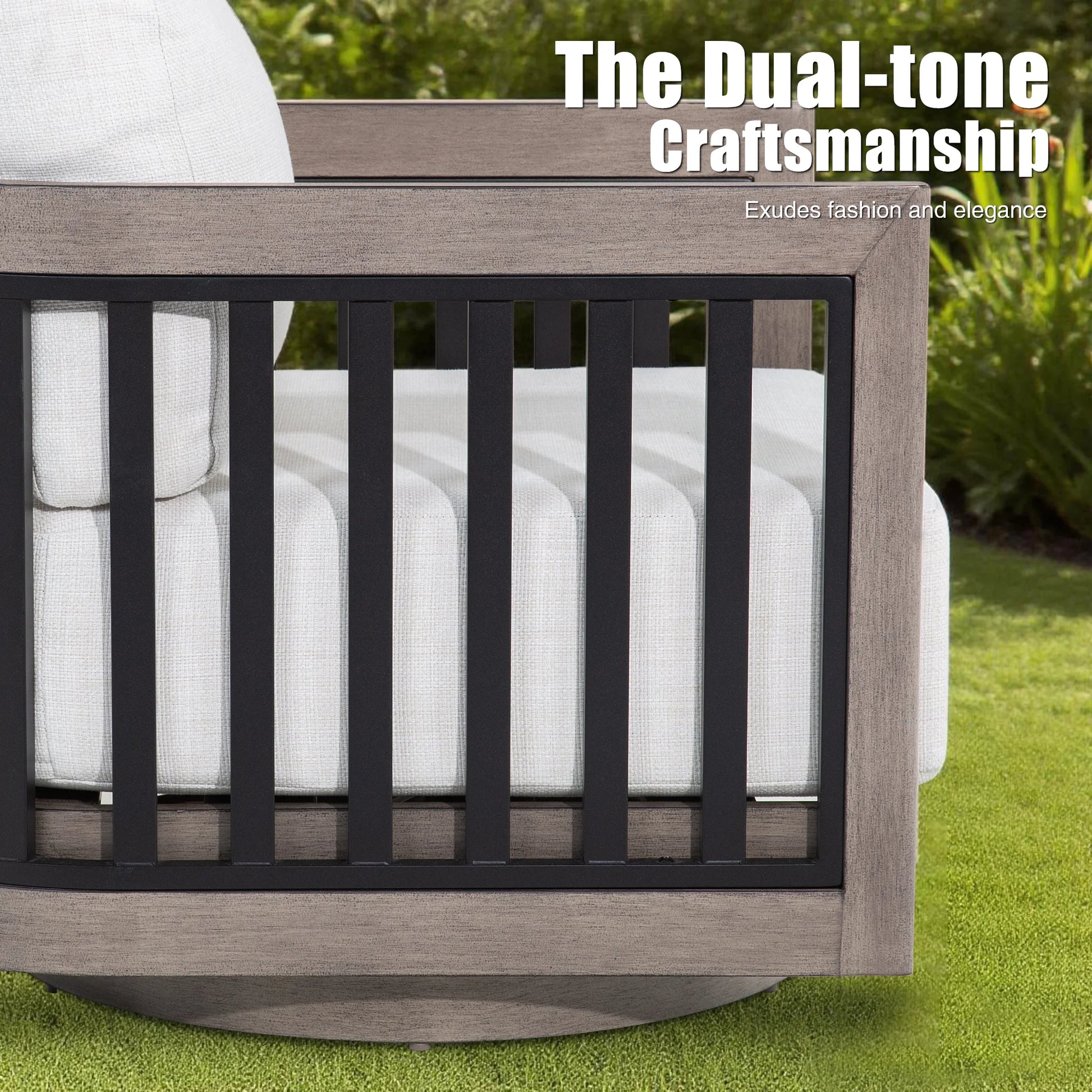 Sereno Outdoor Aluminum Sofa Set With Swivel Chairs and Round Coffee Table
