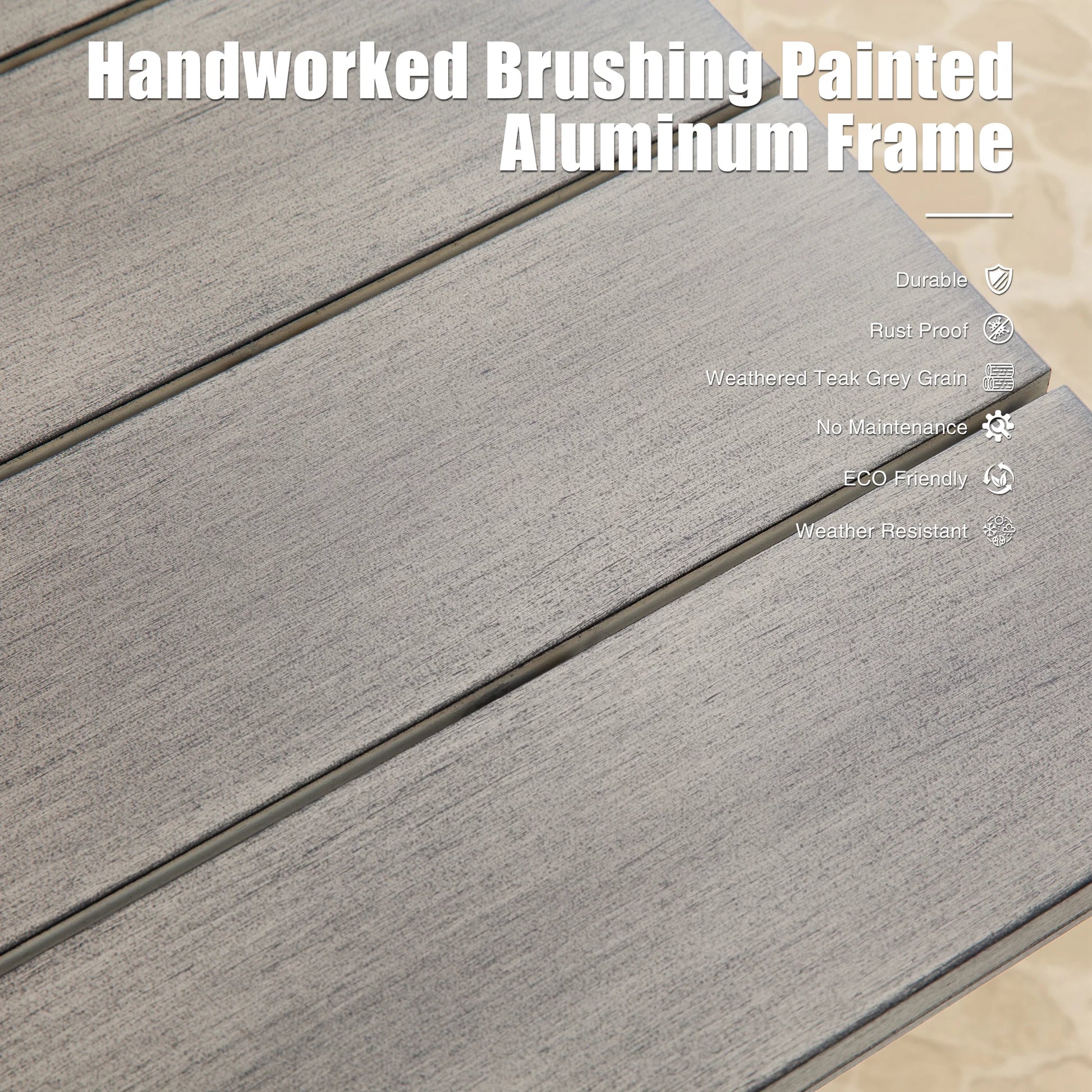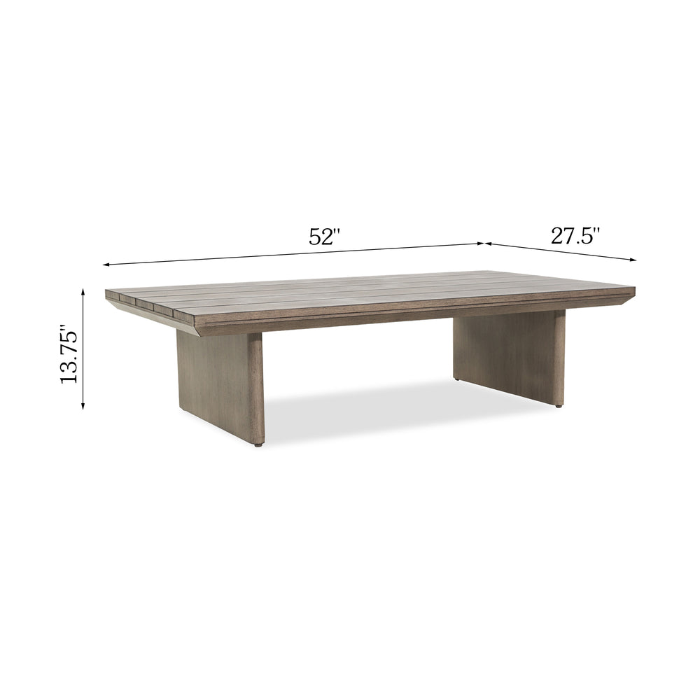 Elevate the aesthetic and functional value of your outdoor space with this elegant rectangular coffee table. Constructed from high-quality, powder-coated aluminum, the table offers exceptional durability and resistance to environmental factors. The tabletop surface replicates the natural grain of teak through hand-painted finish, providing the visual appeal of real wood without the associated maintenance demands. This versatile piece is ideally suited for patios, gardens, or other outdoor environments where both style and practicality are essential.