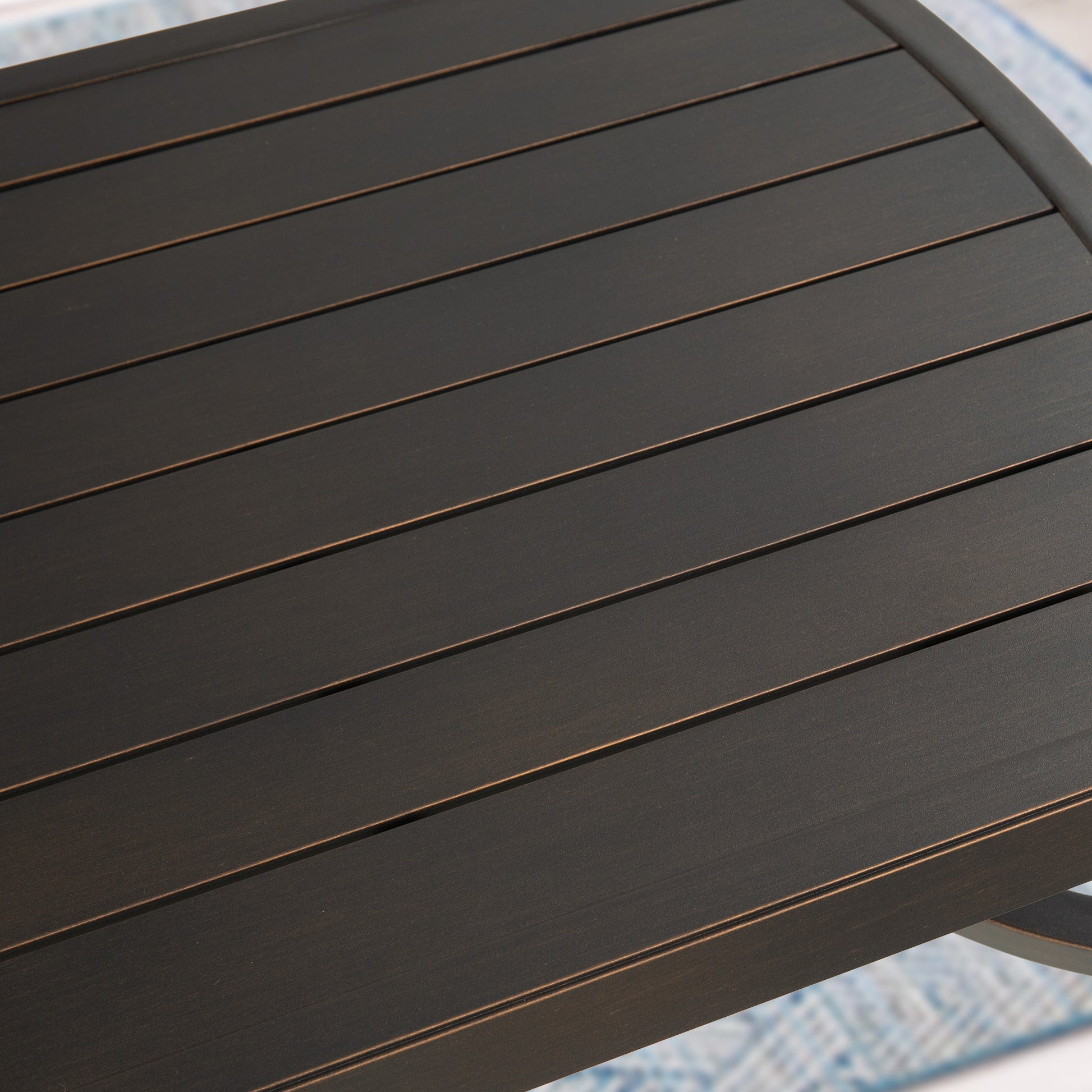 - Robust Construction: Constructed from a durable powder-coated aluminum frame with a slatted top design, this outdoor coffee table is designed to withstand all weather.
