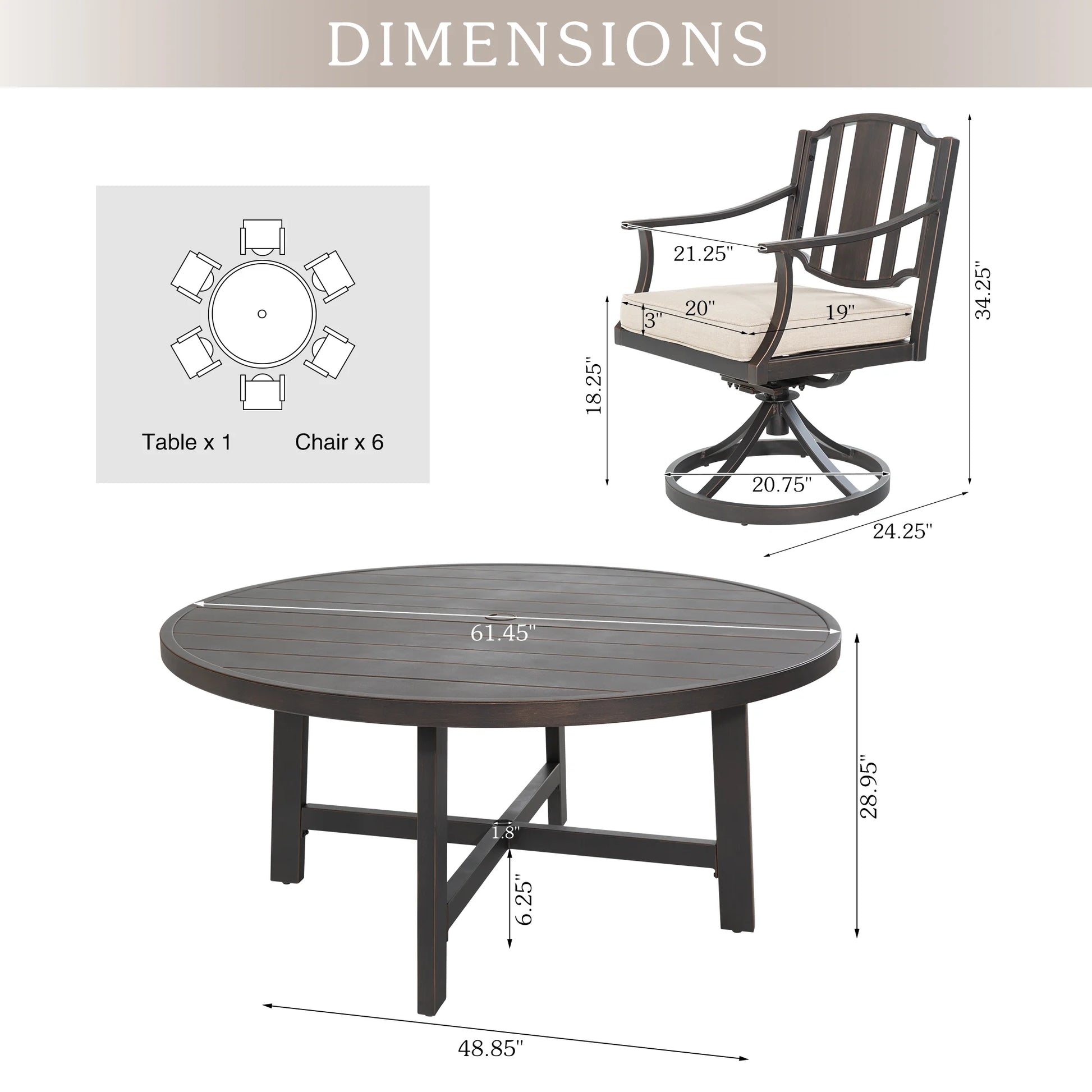 Amario 7 Pieces Round Patio Dining Set with Swivel Chair