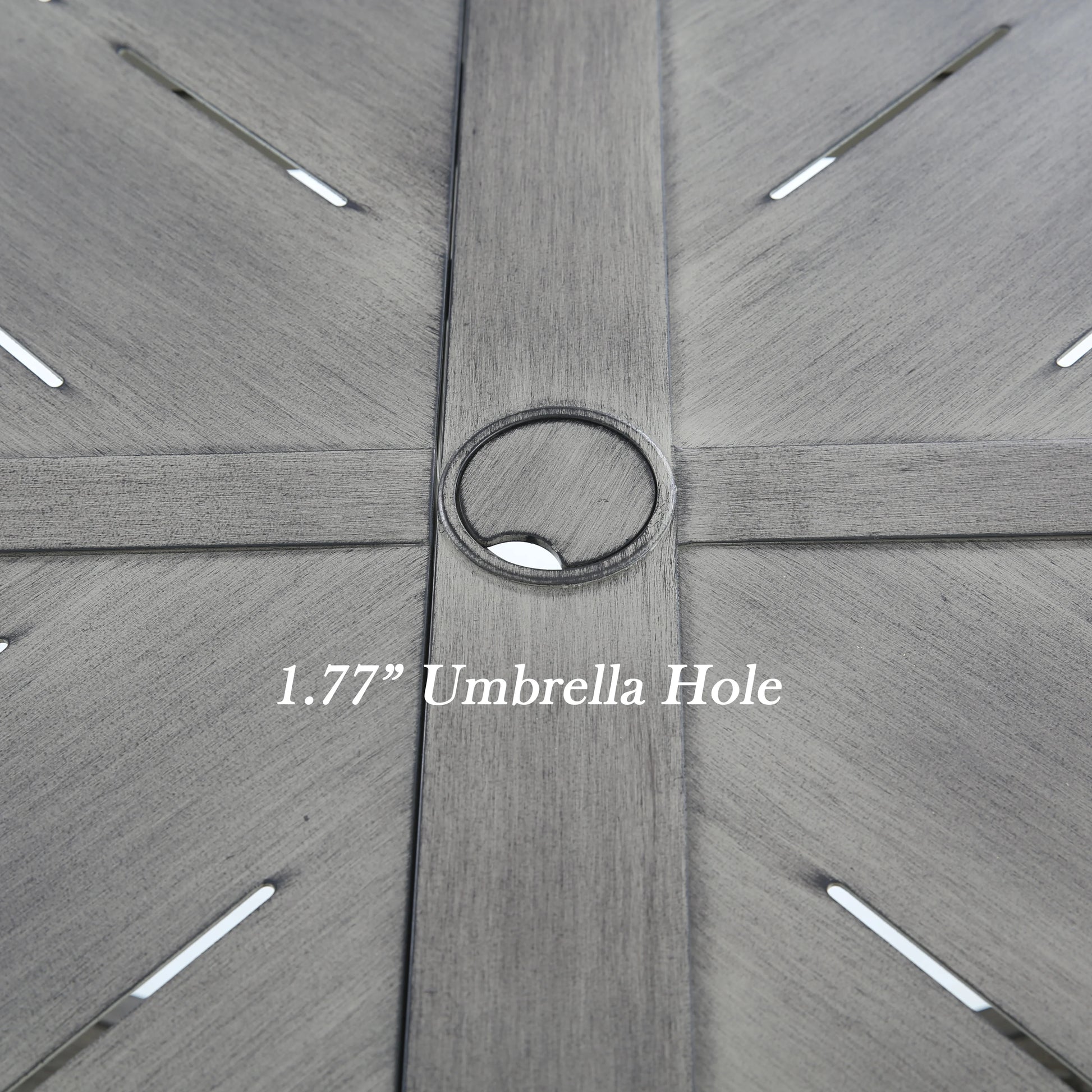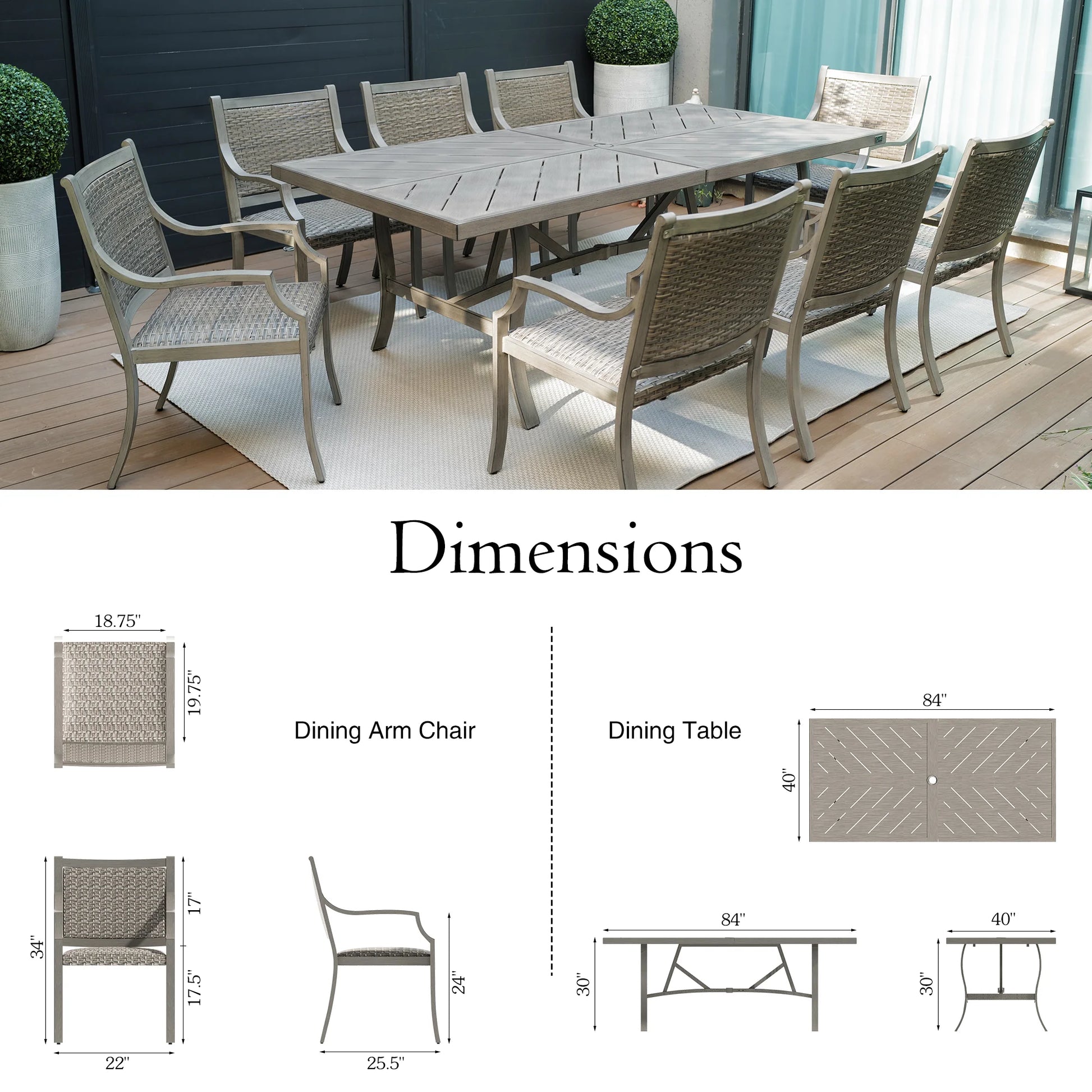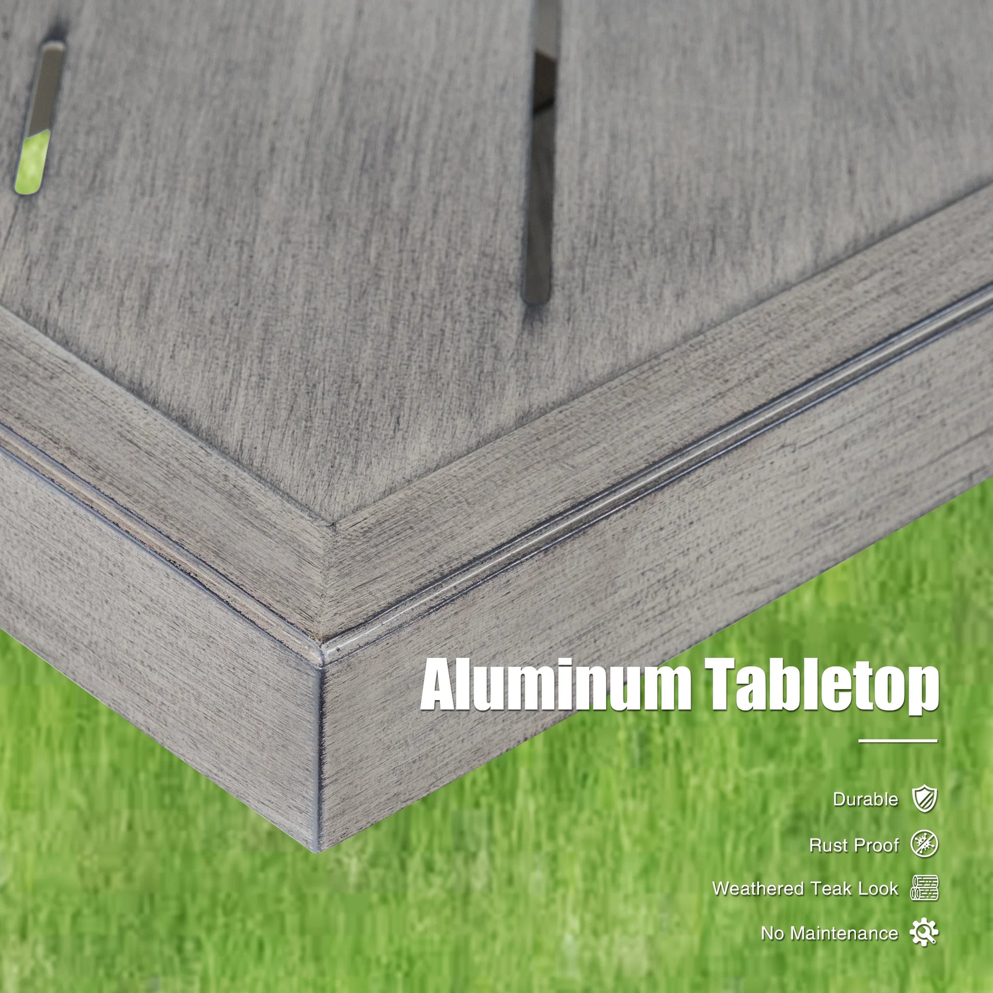 84" Rust-Resistant Dining Table: Featuring a powder-coated aluminum tabletop and reinforced steel legs, built to withstand diverse weather conditions. Includes a 1.77" umbrella hole for shaded comfort.